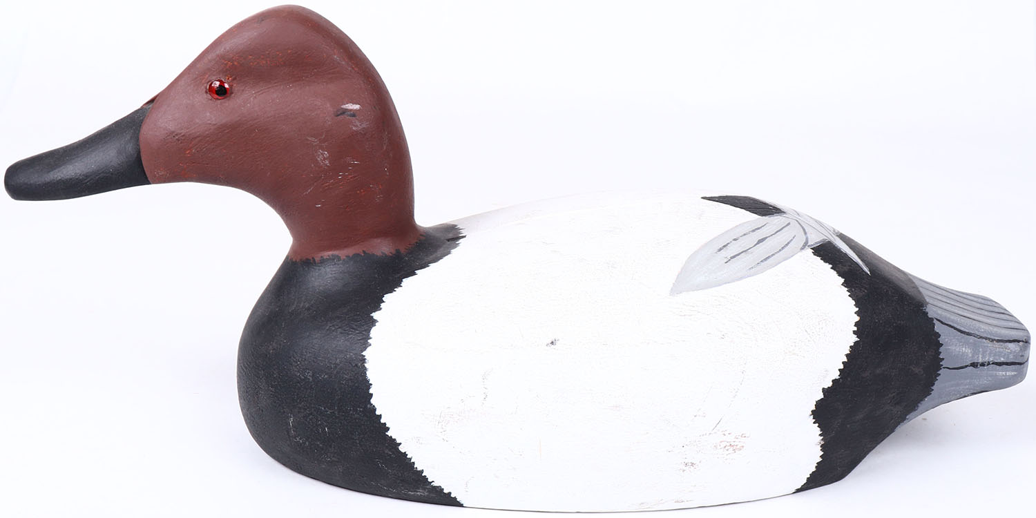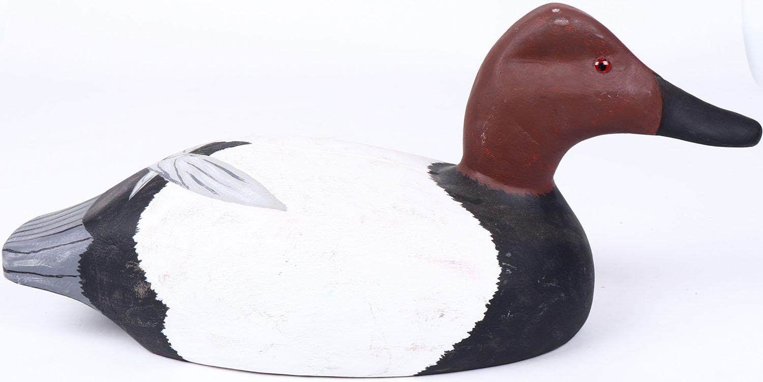 Canvasback Drake by Doug Hevener (2006), Glass eyes, solid wood, original paint, structurally excellent, signed on bottom. Grade: MINT - Value: 30 to 60