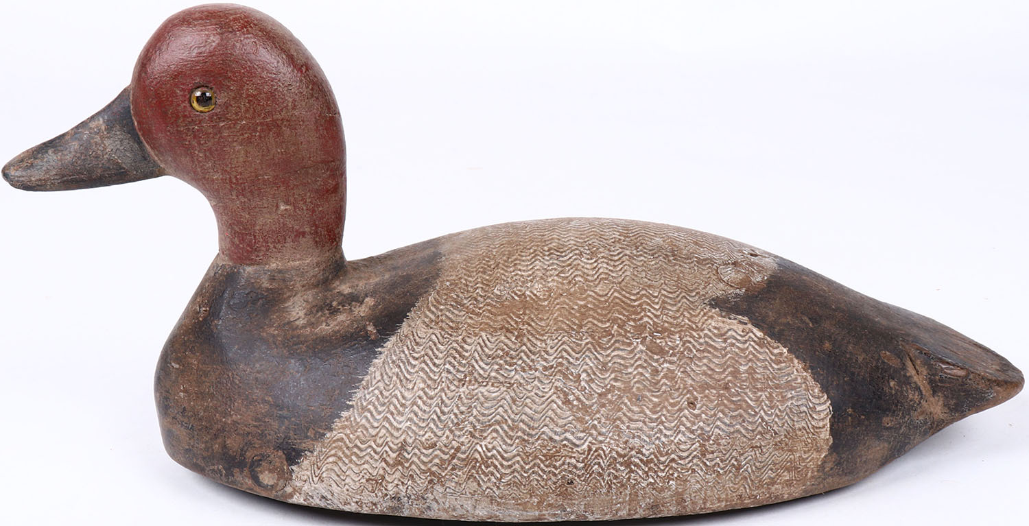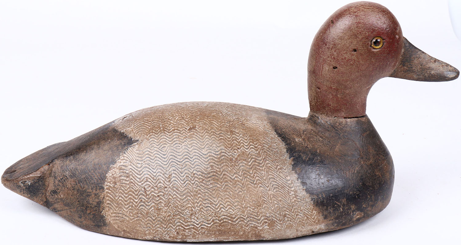 Redhead Drake by unknown maker, glass eyes, solid wood, original paint with comb painting, structurally excellent. Grade: Excellent ++ - Value: 30 to 60