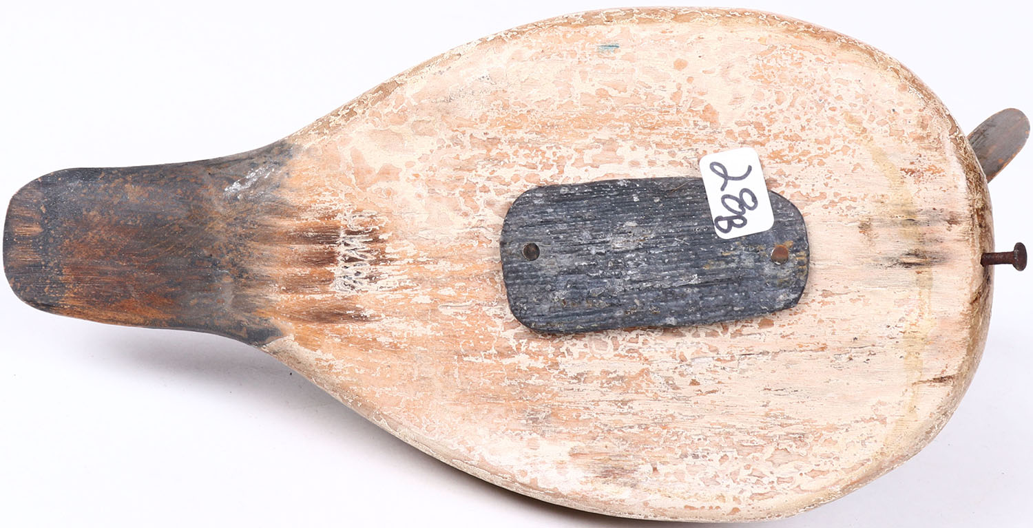 Bufflehead Drake by CWW (Curtis Waterfield?), glass eyes, hollow wood, original paint, structurally excellent, branded CWW on bottom. Grade: Excellent - Value: 40 to 80