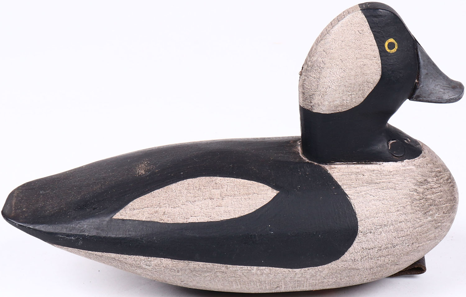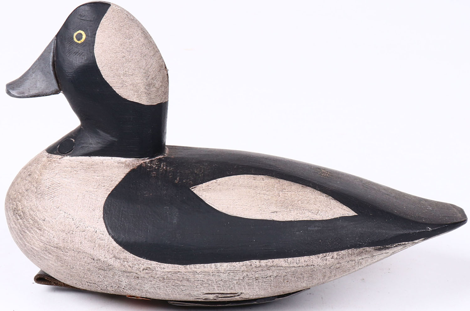 Bufflehead Drake by Joe Racine, Upper Bay Decoys, Elkton, Maryland, painted eyes, solid wood, original paint, structurally excellent. Grade: Excellent ++ - Value: 50 to 100