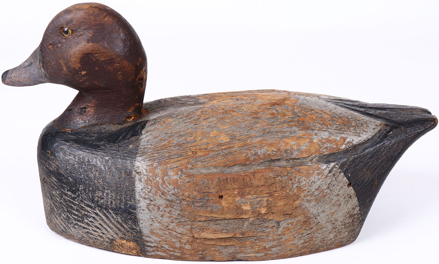 Redhead Drake by Frank Schmidt, MI, Glass eyes, solid wood, original paint, structurally excellent, signed on bottom. Grade: Excellent + - Value: 50 to 100