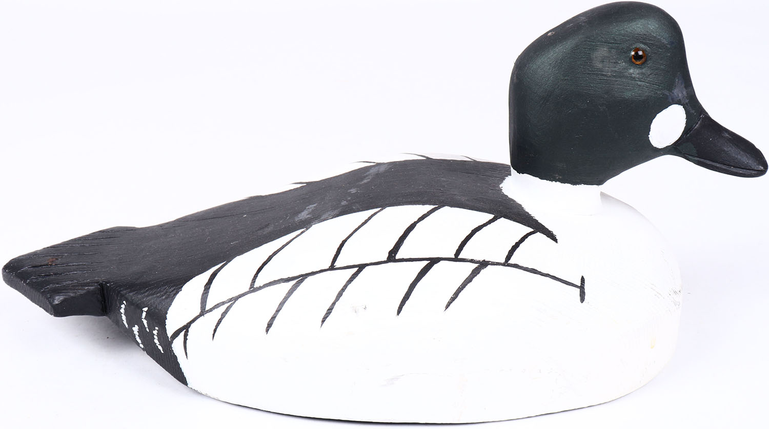 Goldeneye Drake by Maynard Caine, Ontario, Canada, glass eyes, solid wood, repainted, structurally excellent, signed on bottom. Grade: Excellent ++ - Value: 40 to 80