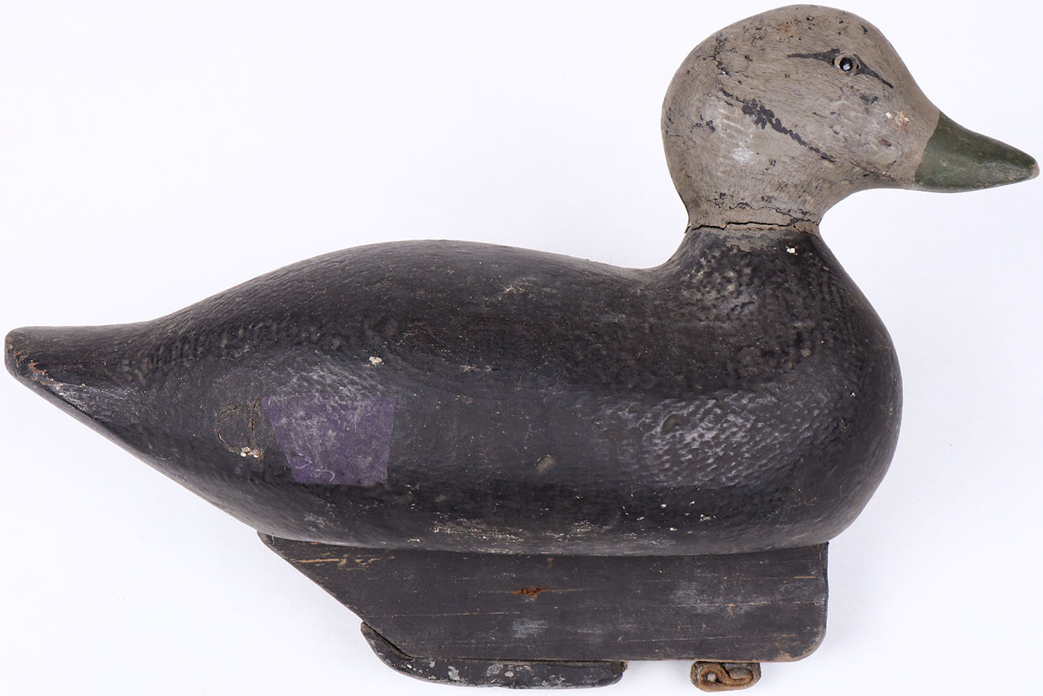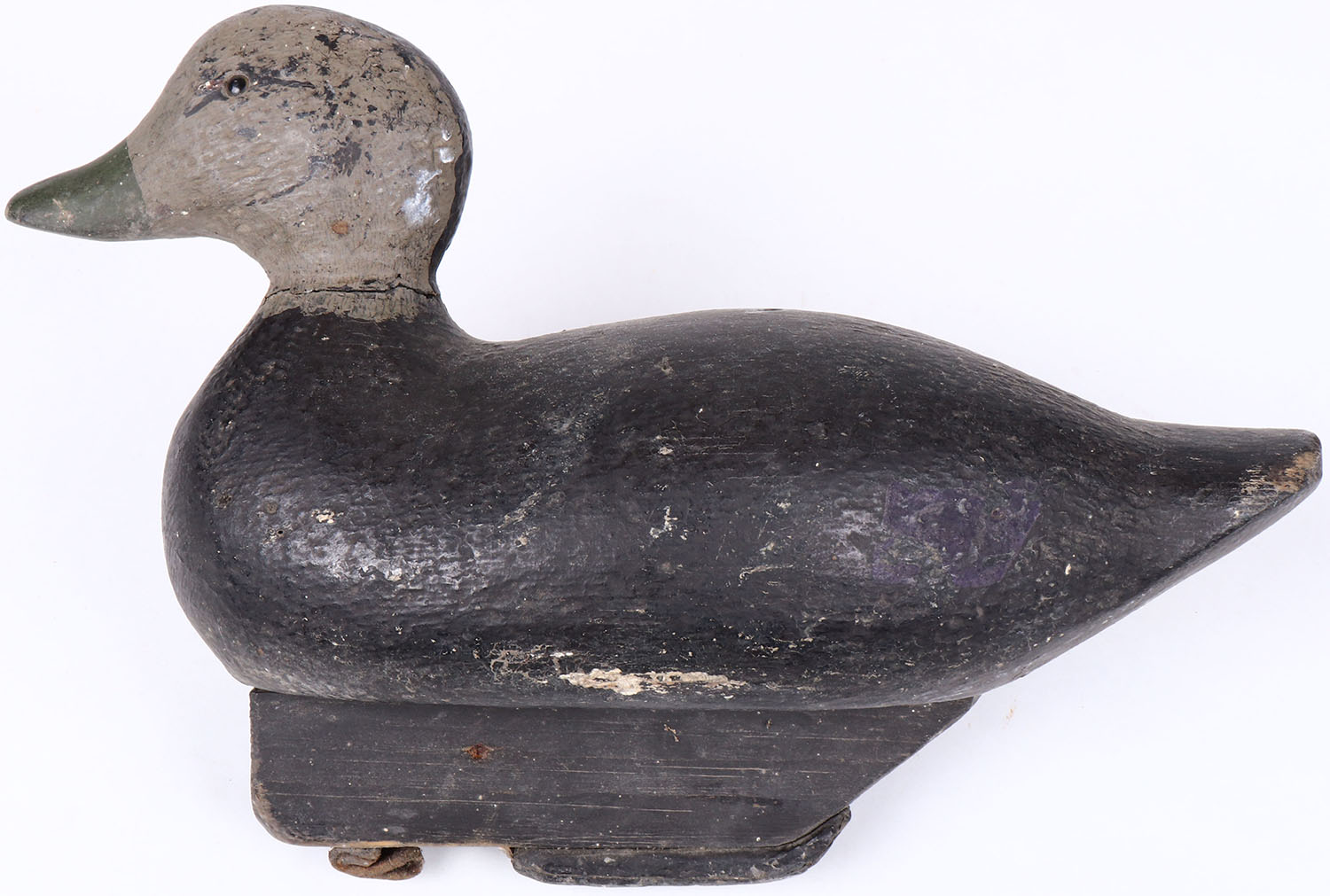 Black Duck by unknown maker, glass eyes, solid wood, neck is slightly loose. Grade: Excellent - Value: 40 to 80