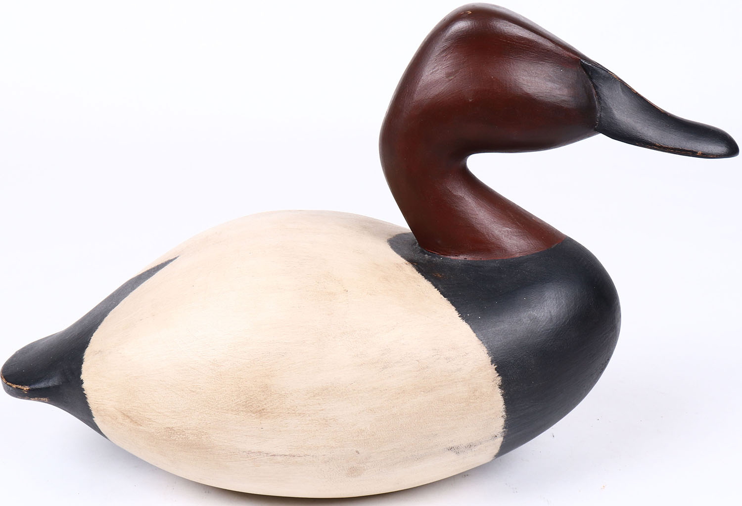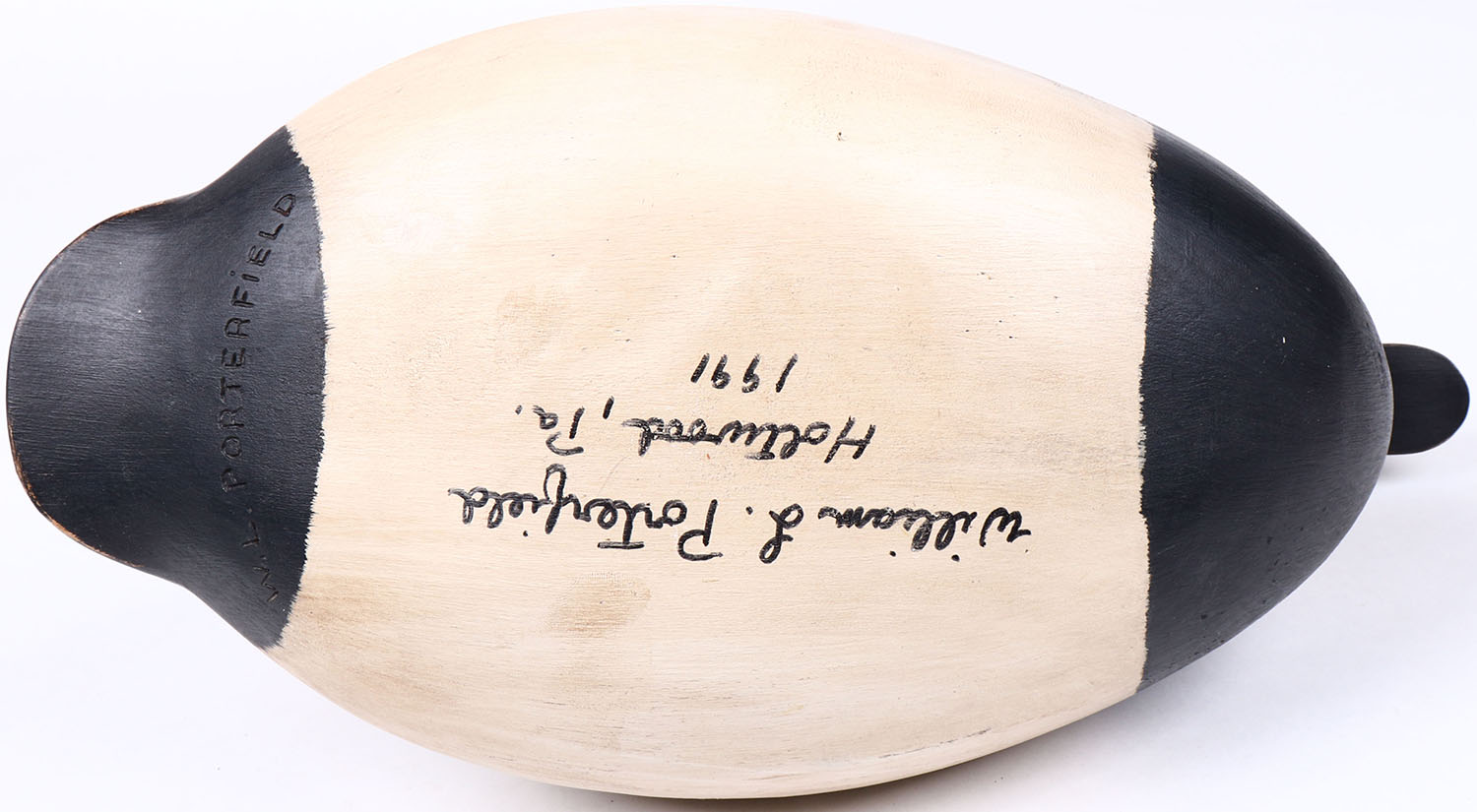 Canvasback Drake by William L. Porterfield, Holtwood, PA. no eyes, solid wood, original paint, structurally excellent, signed on bottom. Grade: Excellent ++ - Value: 50 to 100