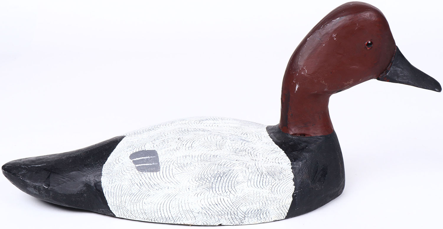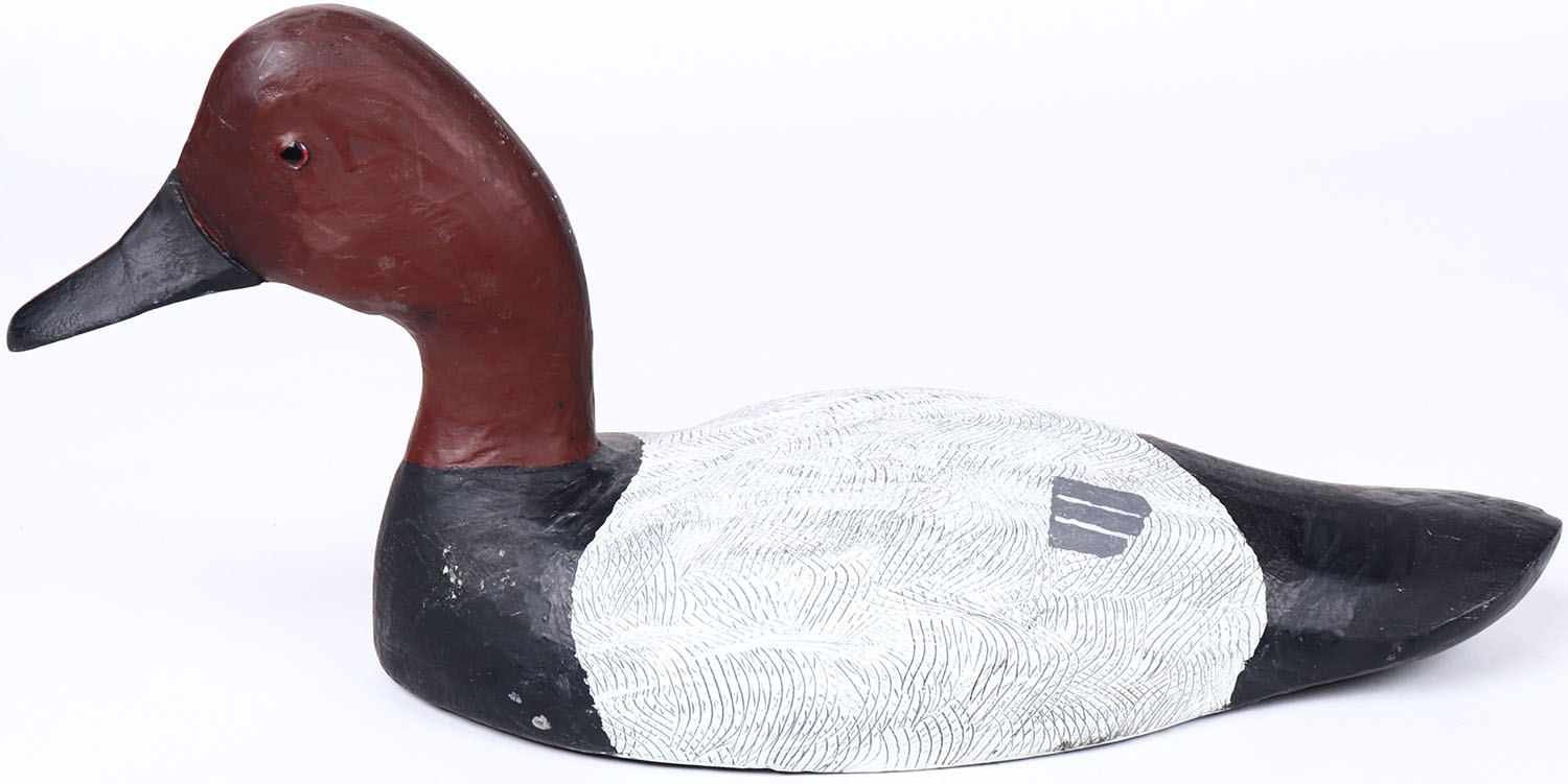 Canvasback Drake by unknown maker, glass eyes, hollow wood, repainted, comb painting, structurally excellent. Grade: Excellent ++ - Value: 20 to 50