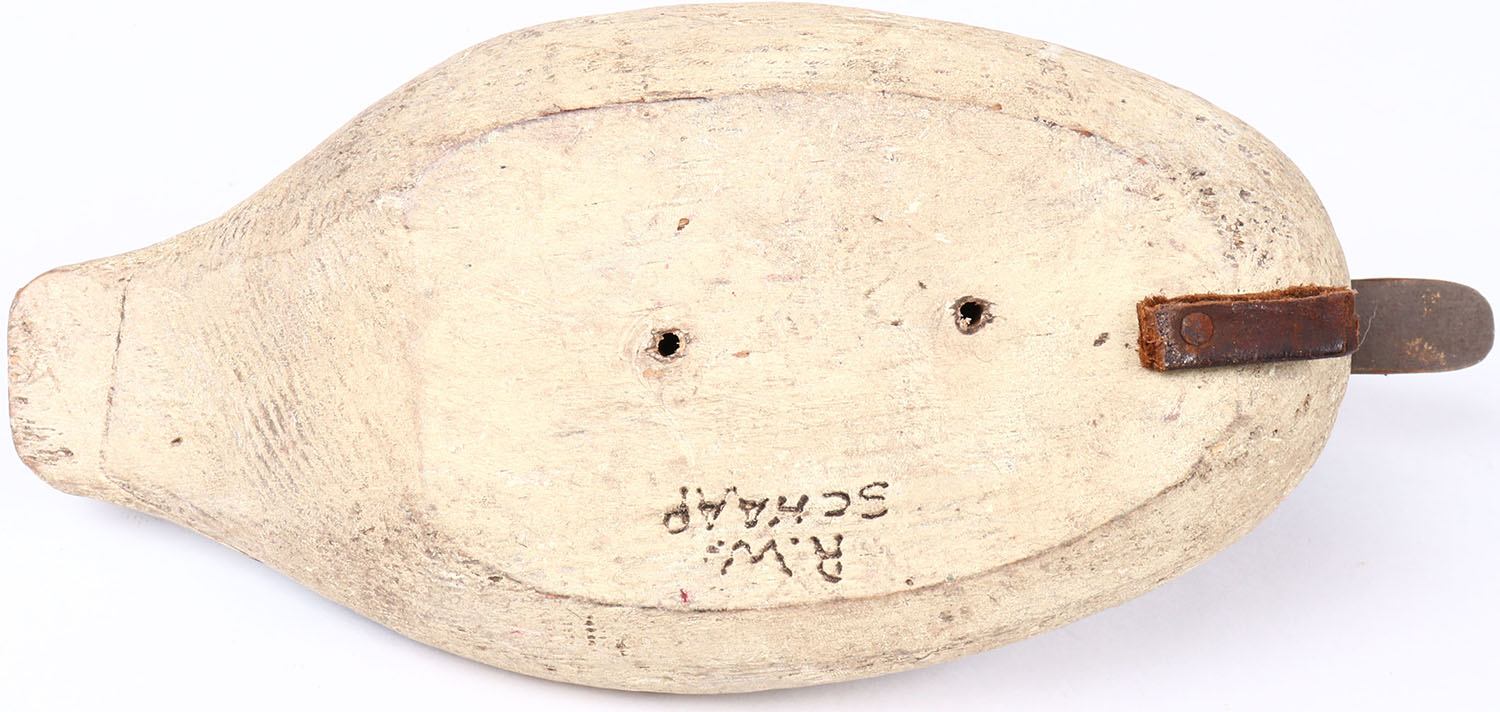 Bufflehead Drake by R.W. Schaap, glass eyes, hollow wood, original paint, structurally excellent, signed on bottom. Grade: Excellent ++ - Value: 50 to 100