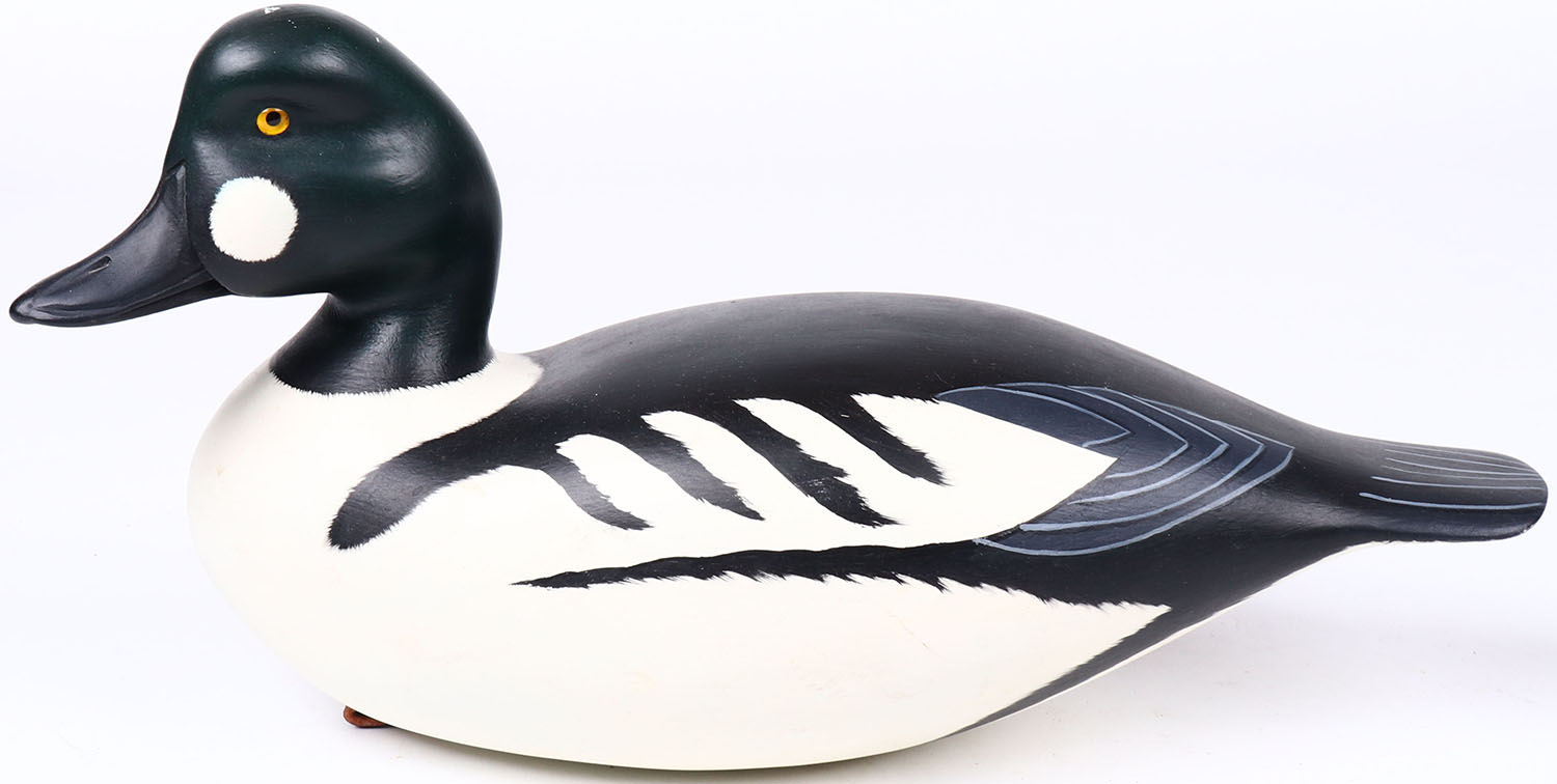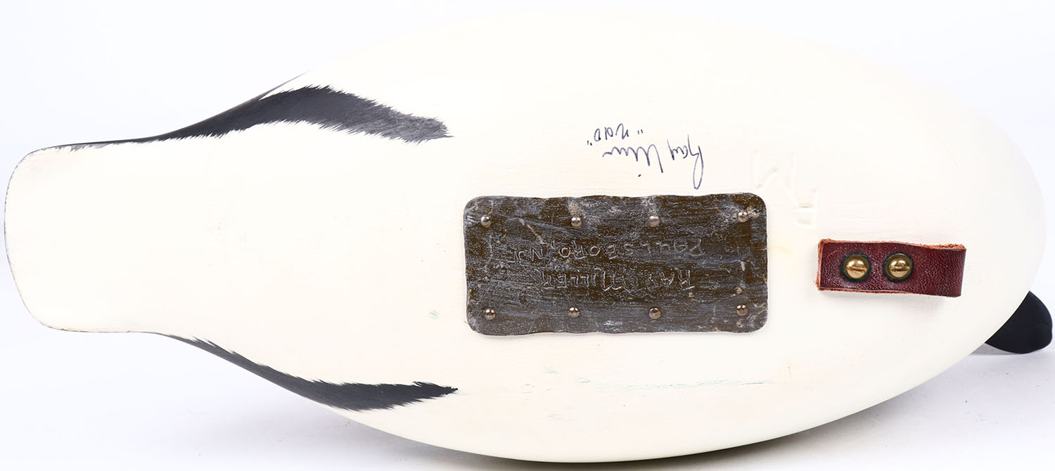 Goldeneye Drake by Ray Miller, Paul S. Boro, N.J. glass eyes, hollow wood, original paint, structurally excellent, branded RM and signed on bottom. Grade: MINT - Value: 30 to 60