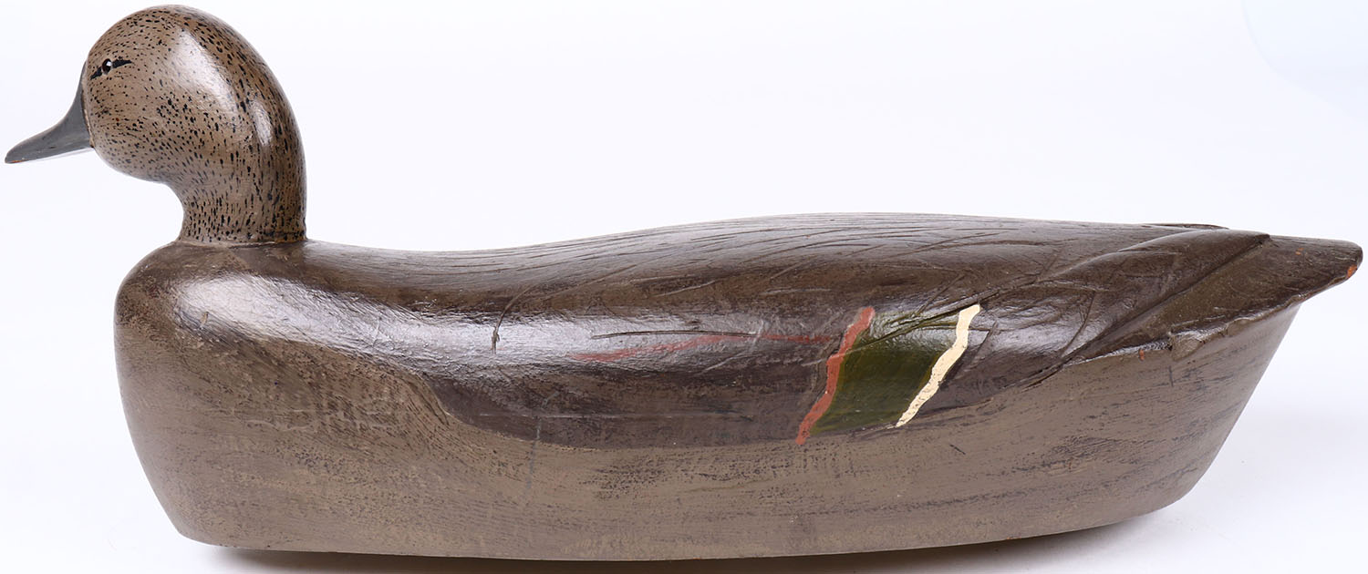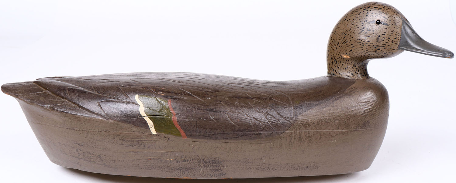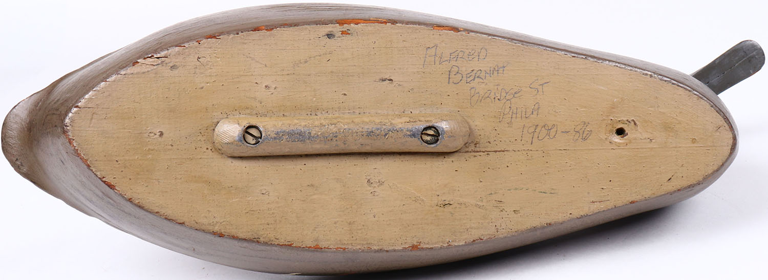Black Duck by Alfred Bernat, Bridge St. PA, glass eyes, hollow wood, original paint, structurally excellent, signed on bottom. Grade: Excellent ++ - Value: 100 to 200