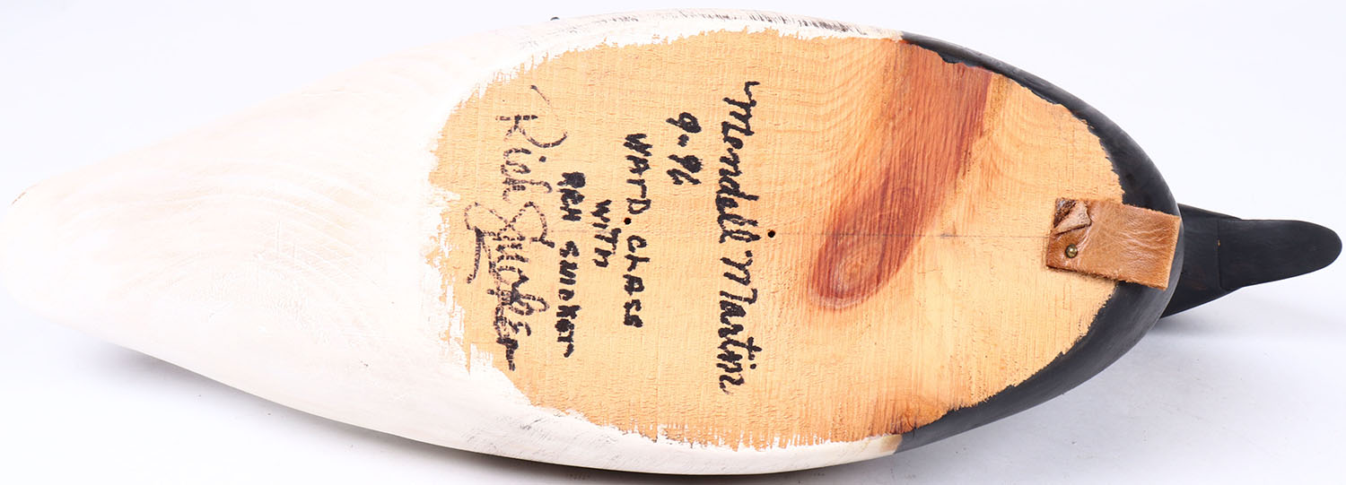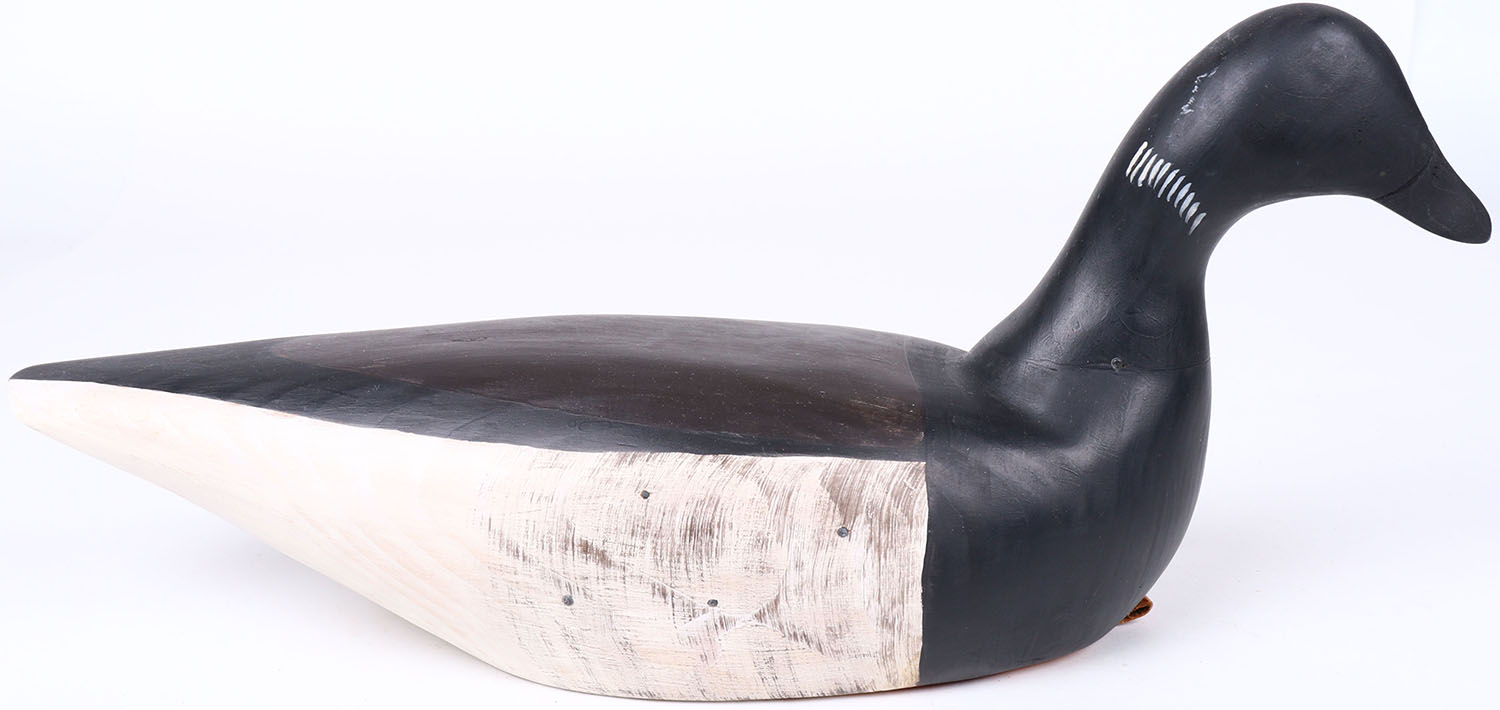 Black Brant by Mendell Martin and Rich Smoker, no eyes, solid wood, original paint, has age crack on side of body, signed