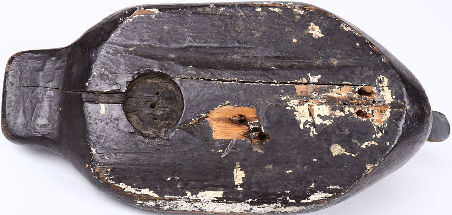 Bluebill Drake by unknown maker, glass eyes, solid wood, original paint, has hairline age crack on bottom. Grade: Excellent - Value: 40 to 80