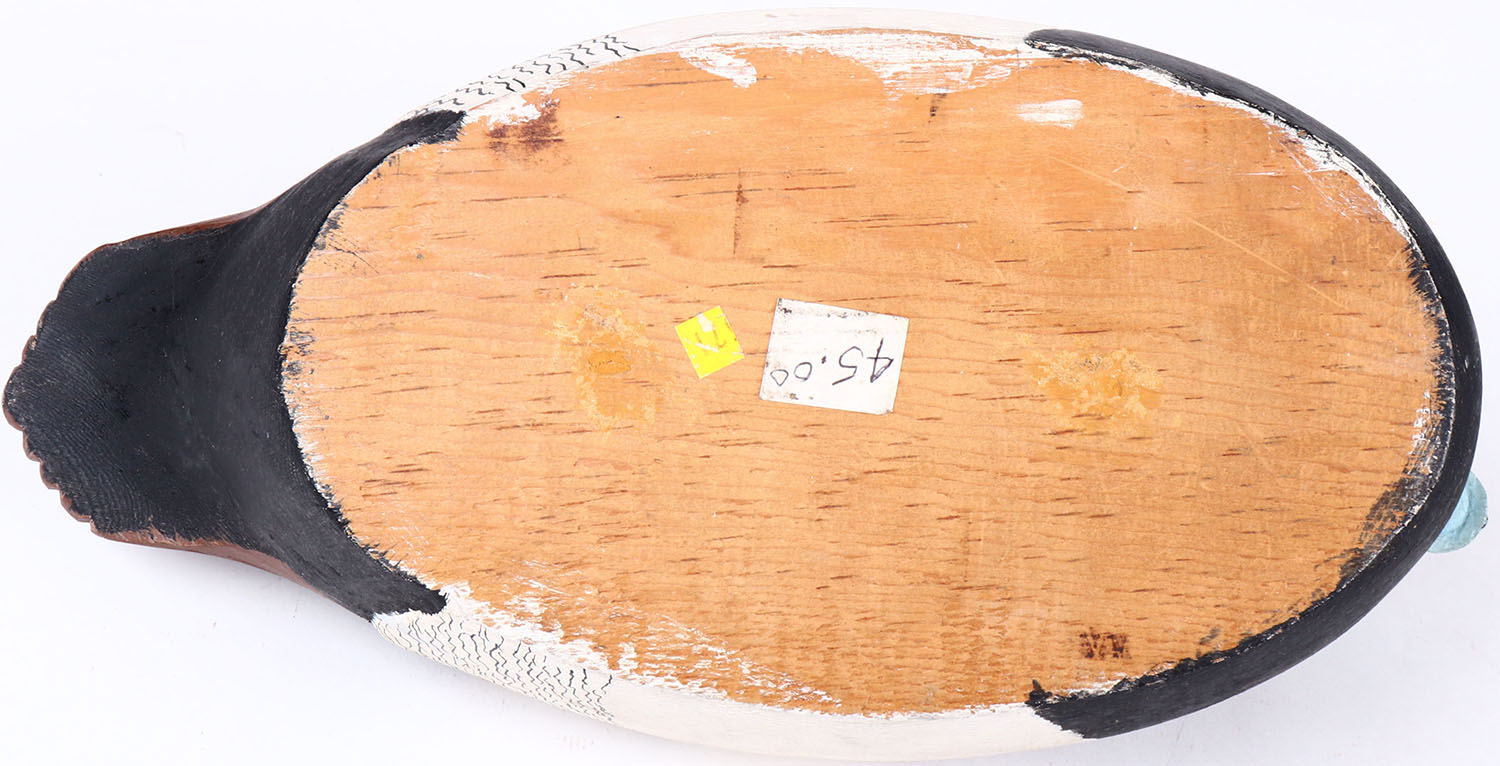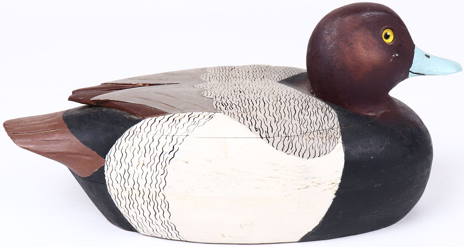 Redhead Drake by unknown maker, glass eyes, hollow wood, original paint, structurally excellent. Grade: MINT - Value: 50 to 100