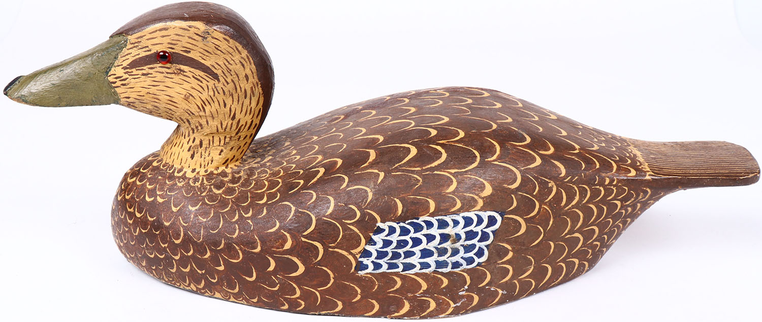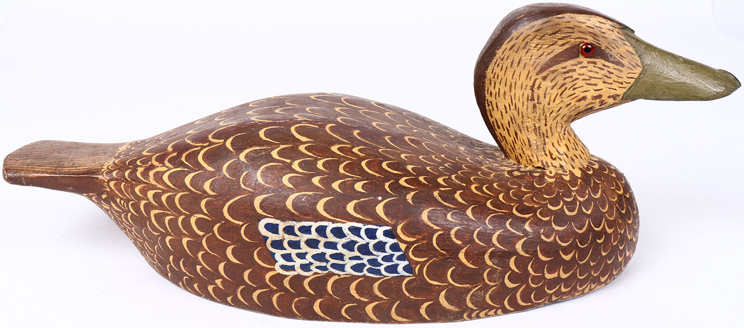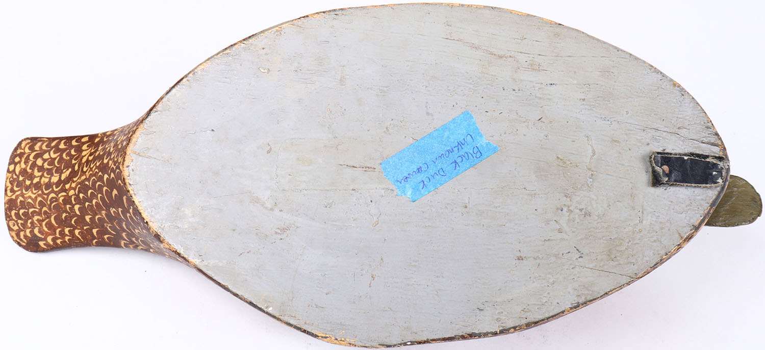 Black Duck by unknown maker, glass eyes, solid wood, original paint, structurally excellent. Grade: Excellent ++ - Value: 30 to 60