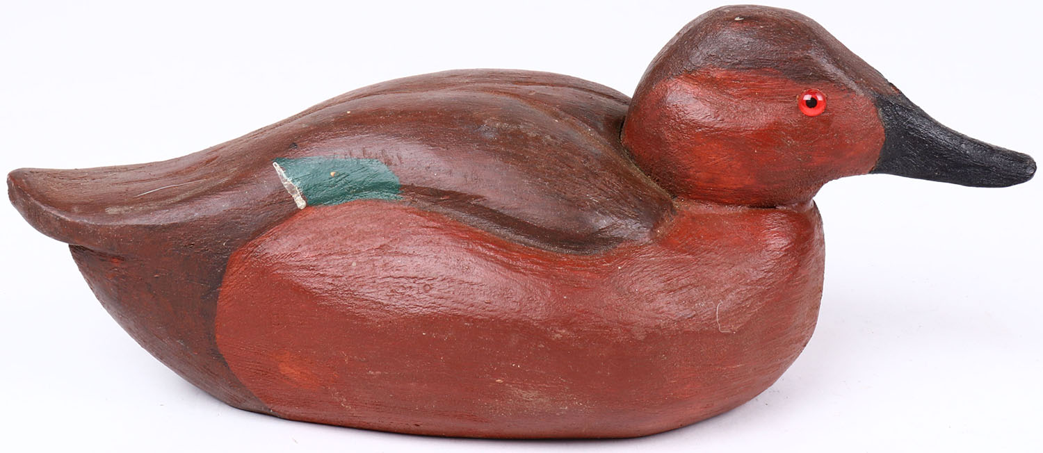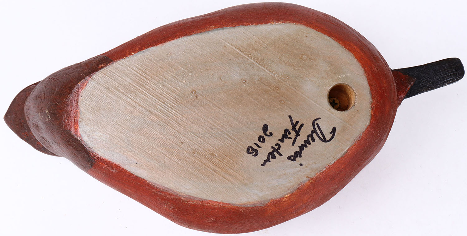 Cinnamon Teal by Drake by Dennis Fincher, glass eyes, solid wood, repainted, signed on bottom, structurally excellent. Grade: Excellent + - Value: 30 to 60