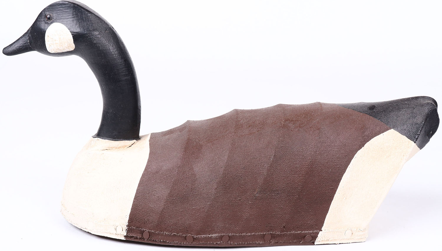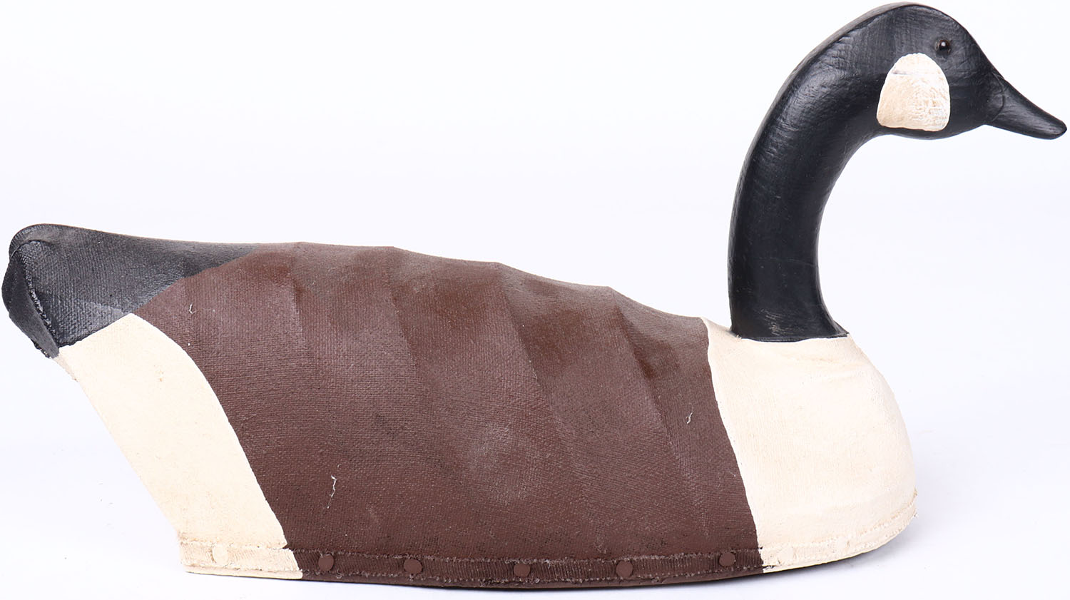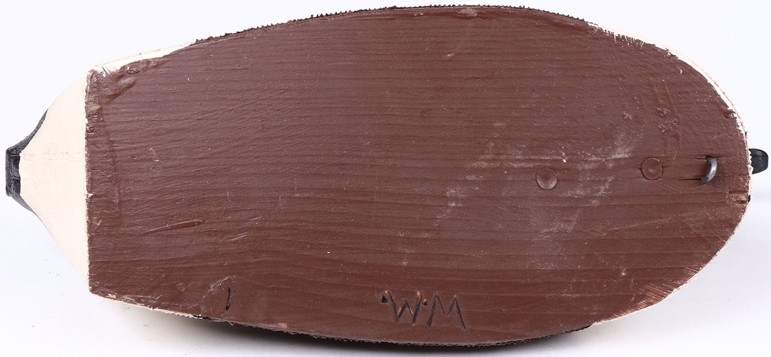 Canada Goose by W.M. glass eyes, canvas over wire with wood base, original paint, structurally excellent, branded W.M. on bottom. Grade: MINT - Value: 30 to 60