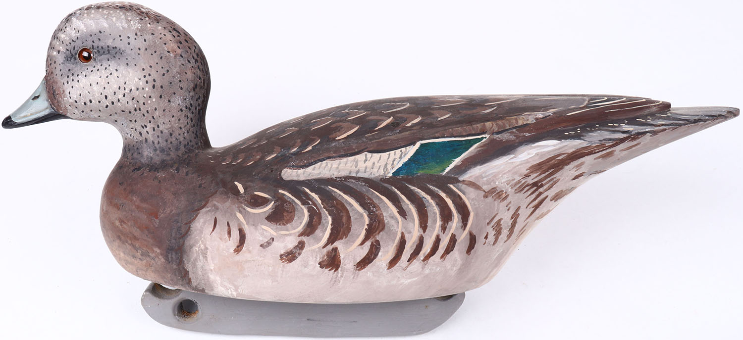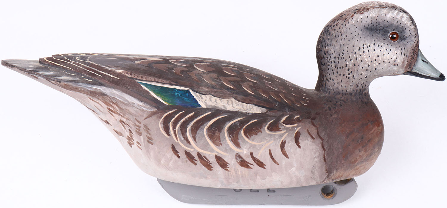 Widgeon by Jack Leach, Tacoma WA, glass eyes, hollow wood, original paint, structurally excellent, signed and branded on bottom. Grade: MINT - Value: 70 to 150