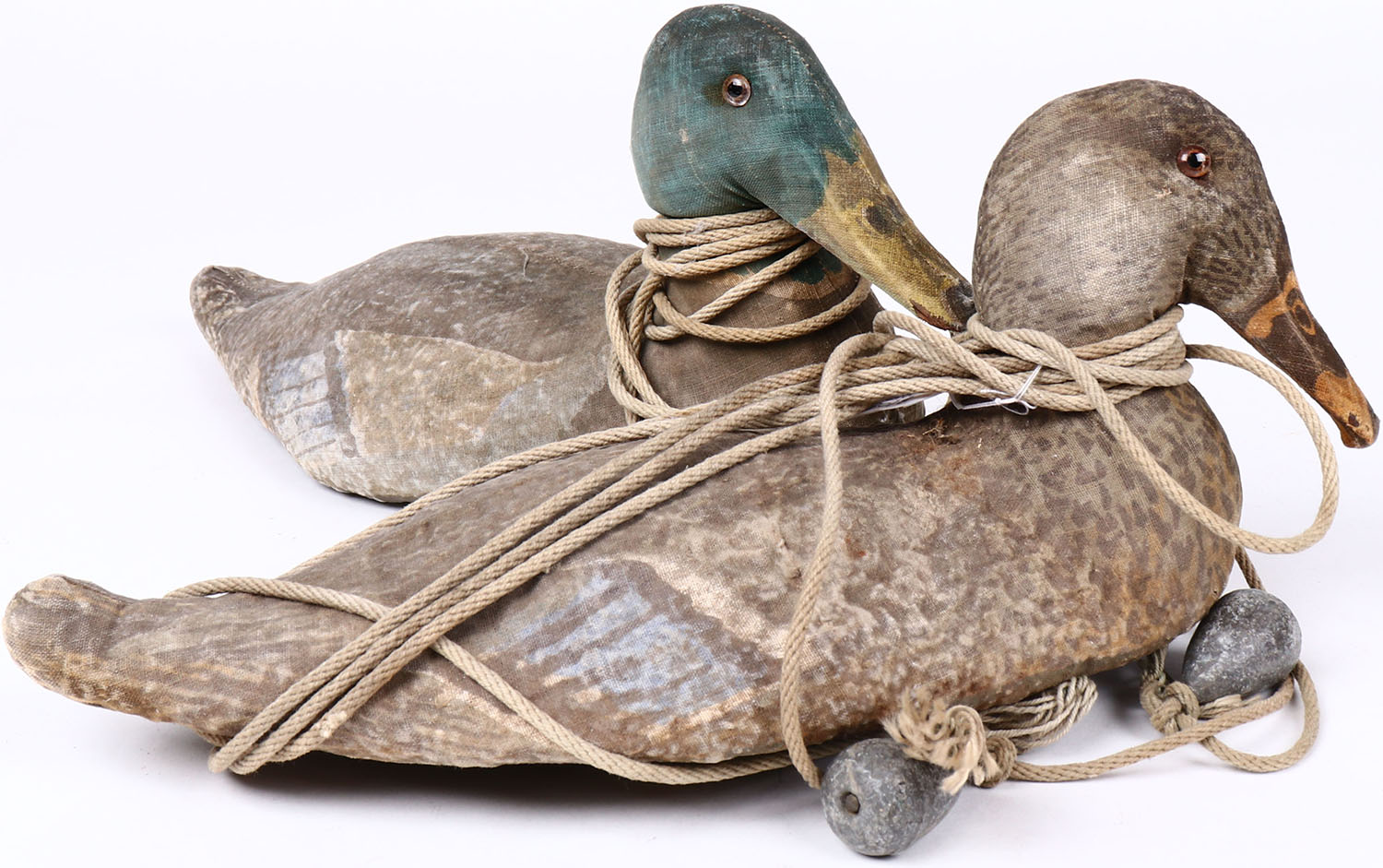 Pair of Mallard by unknown maker, glass eyes, canvas over cork, original paint, structurally excellent. Grade: Excellent ++ - Value: 30 to 50