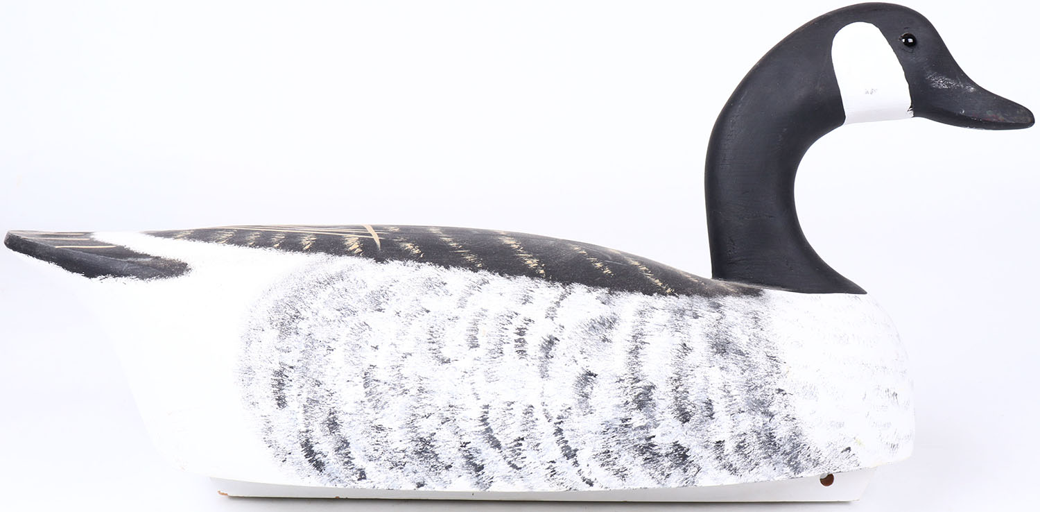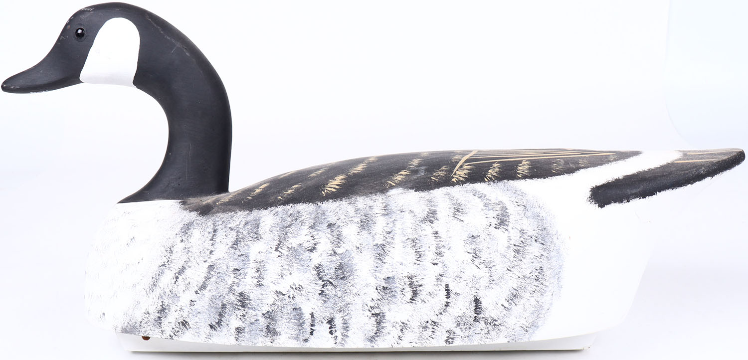 Canada Goose by Birdsall Decoys, glass eyes, hollow wood, original paint, structurally excellent, branded by BIRDSALL DECOYS on bottom. Grade: MINT - Value: 50 to 150