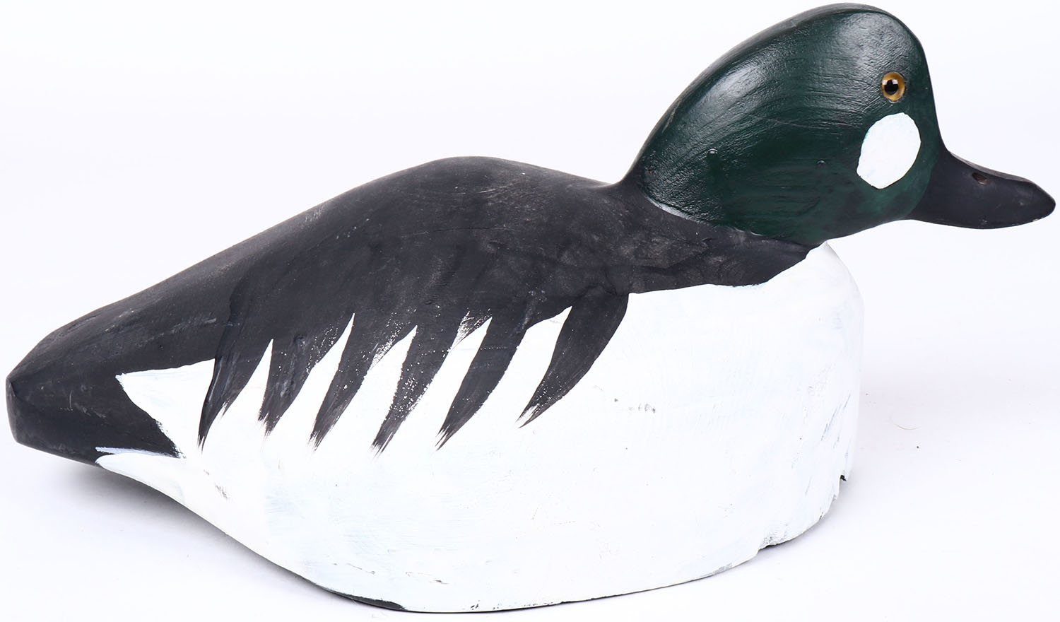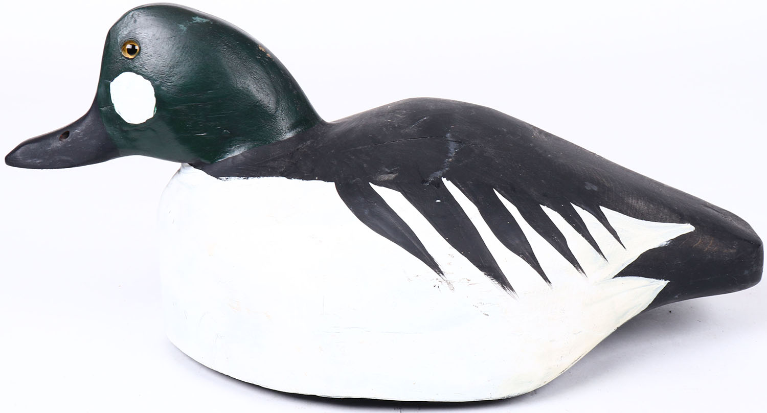 Goldeneye Drake by unknown maker, glass eyes, solid wood, original paint, structurally excellent. Grade: MINT - Value: 30 to 50