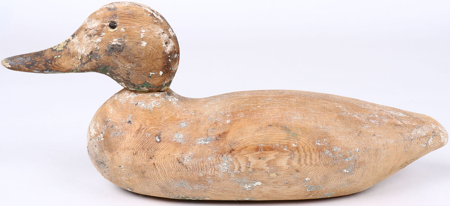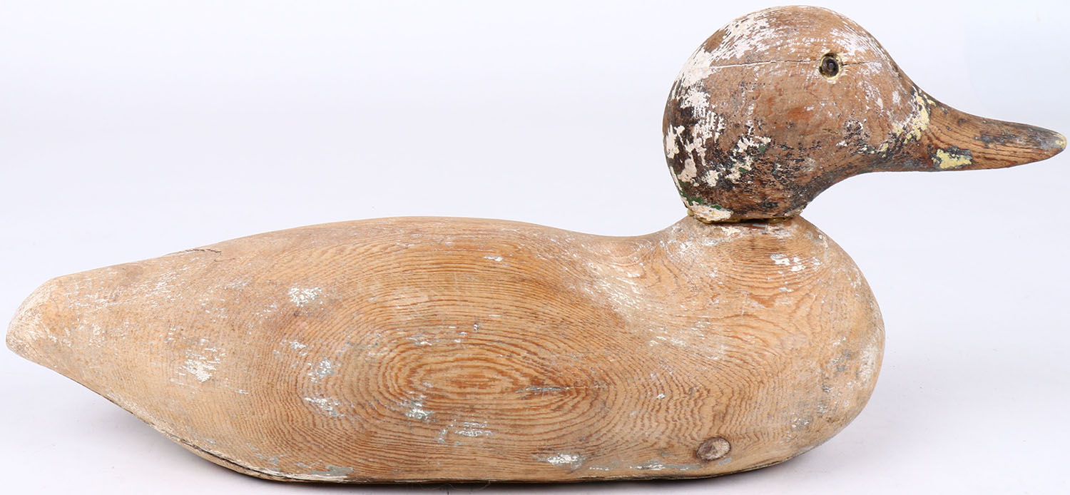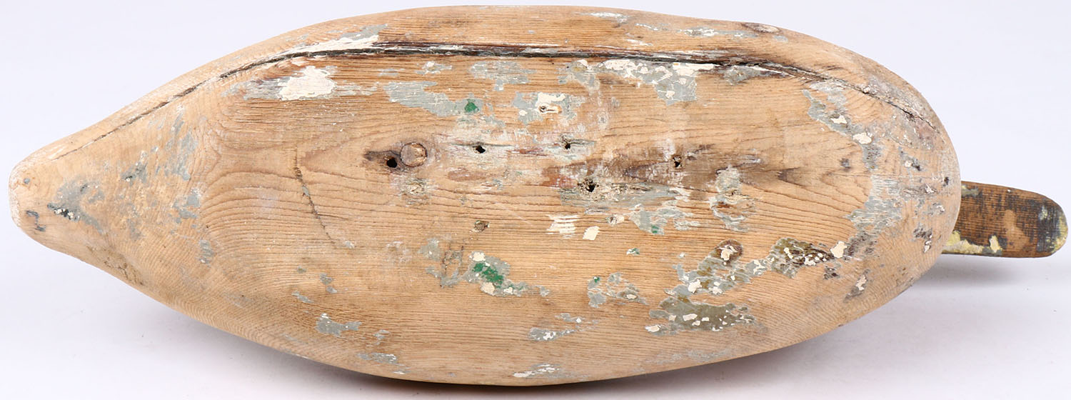 Mallard by unknown maker, glass eyes, solid wood, has age crack on bottom of body. Grade: Very Good ++ - Value: 10 to 30