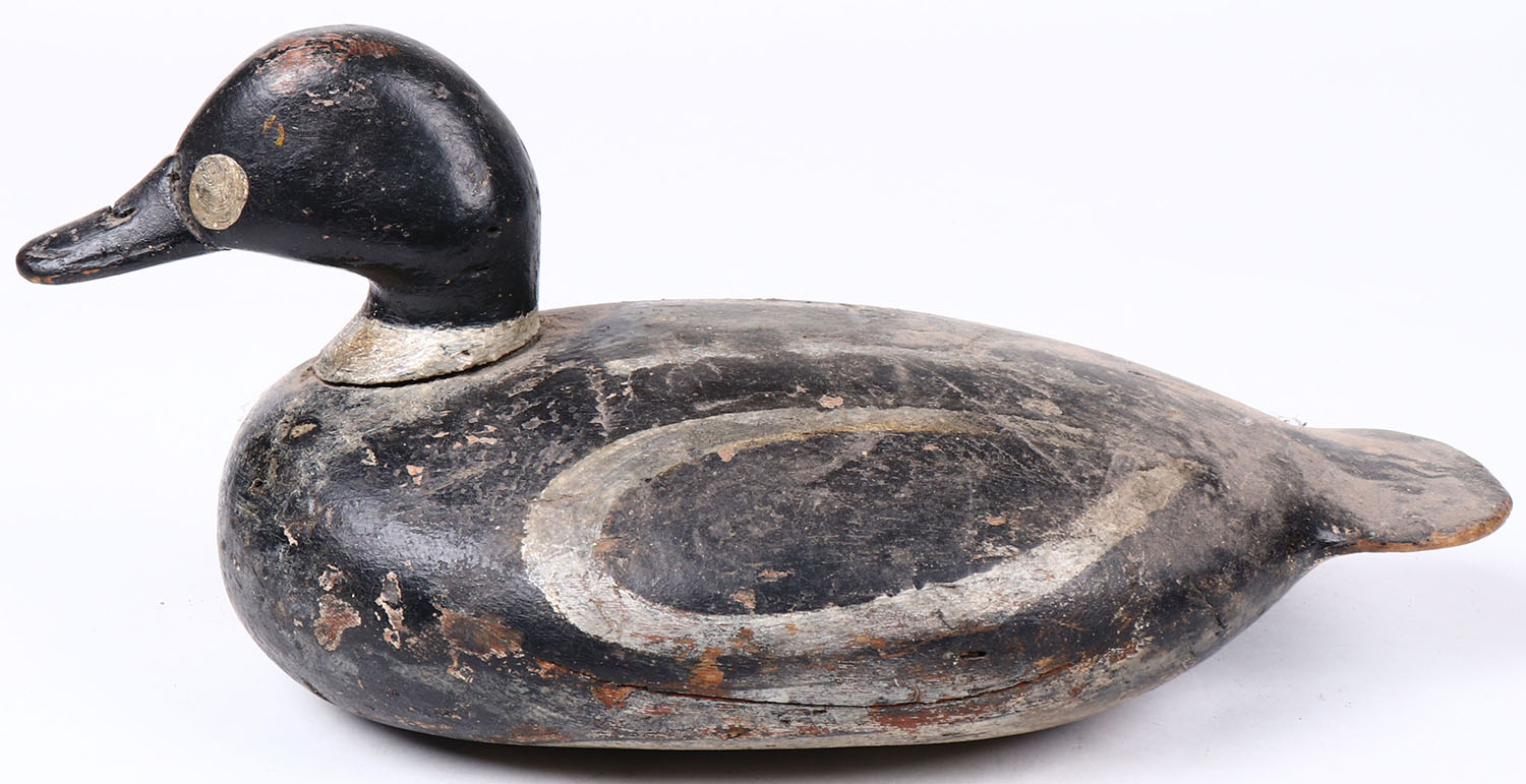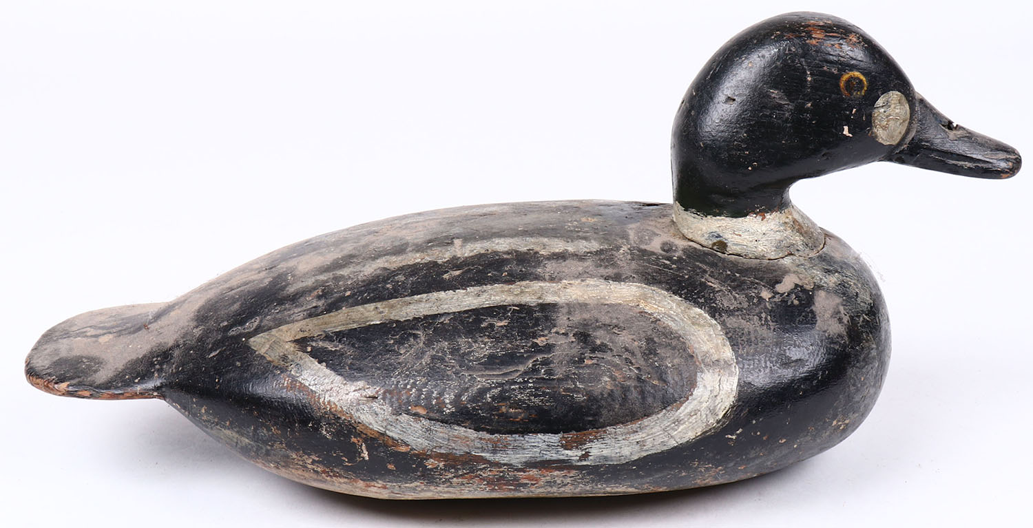 Goldeneye Drake by unknown maker, painted eyes, hollow wood, original paint, structurally excellent. Grade: Very Good ++ - Value: 50 to 150