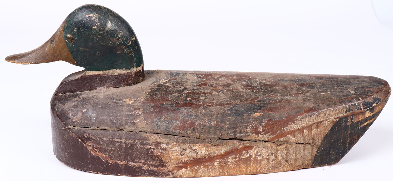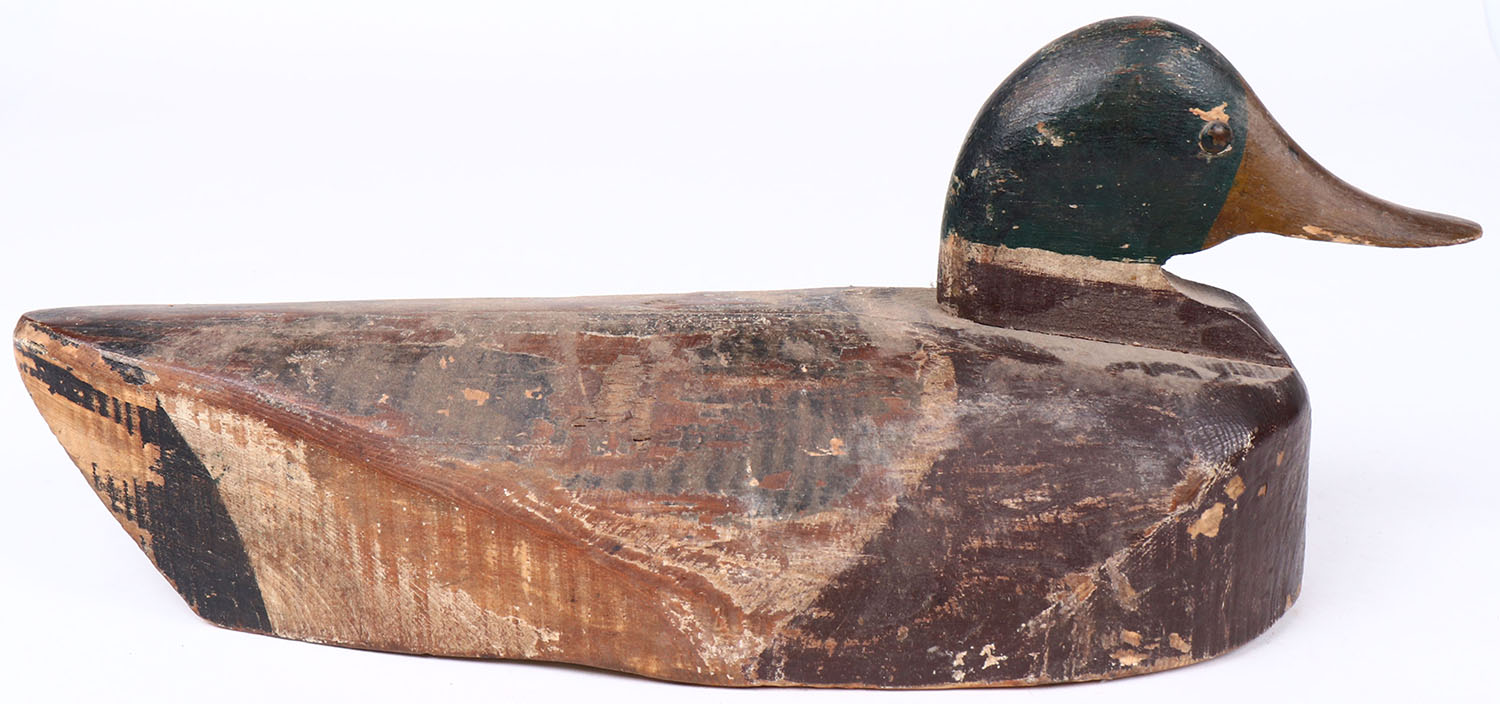 Mallard Drake by Buildori Woodworking, Co, Burlington, Iowa, tack eyes, solid wood, original paint, structurally excellent, signed on bottom. Grade: Very Good ++ - Value: 100 to 200