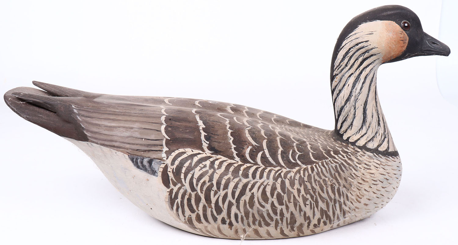 Hawaiian Goose by JEL, glass eyes, hollow wood, original paint, structurally excellent, branded JEL on bottom. Grade: MINT - Value: 100 to 200