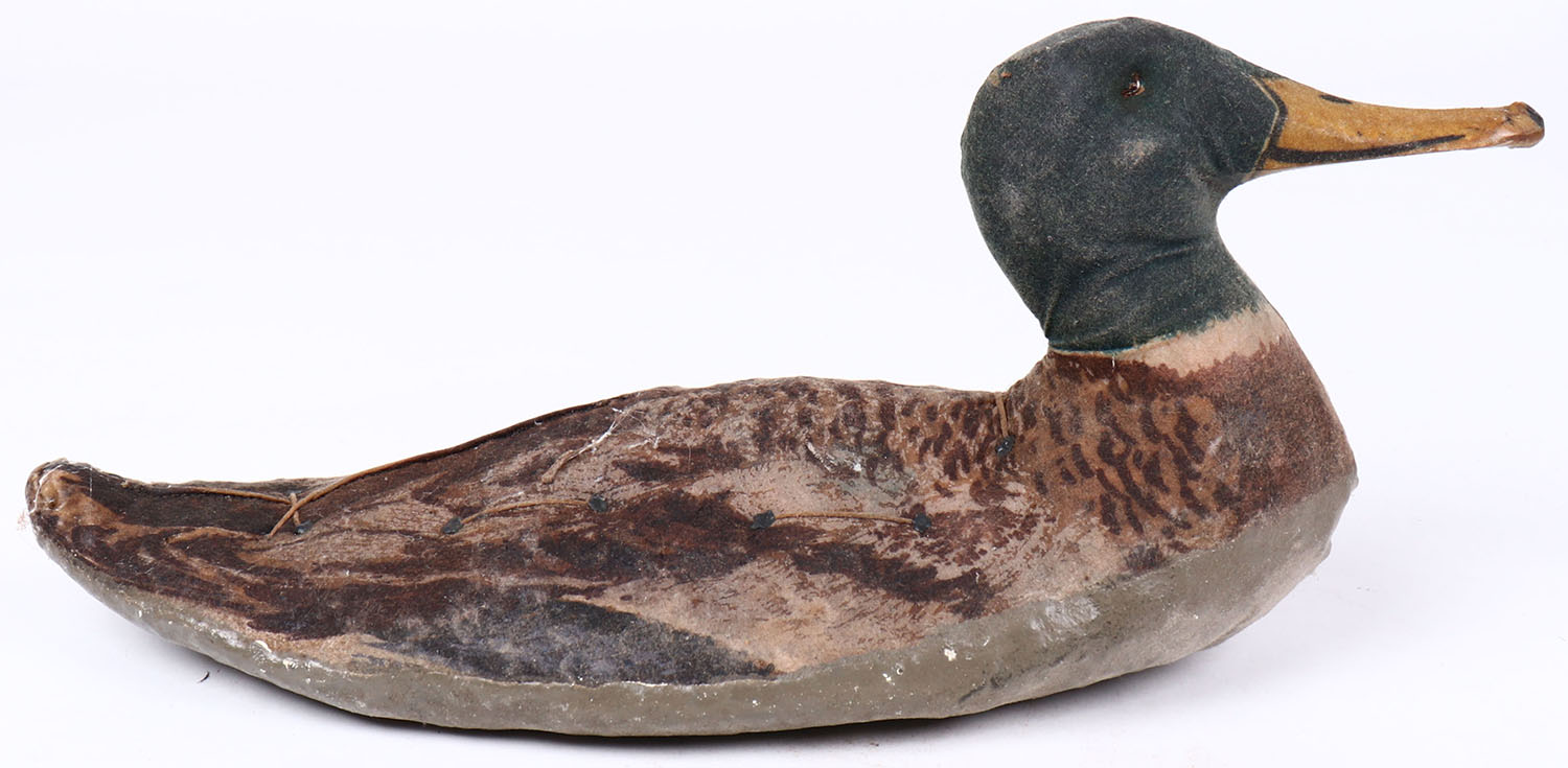 Mallard Drake by unknown maker, glass eyes, canvas over cork, structurally excellent, original paint. Grade: Excellent + - Value: 20 to 40
