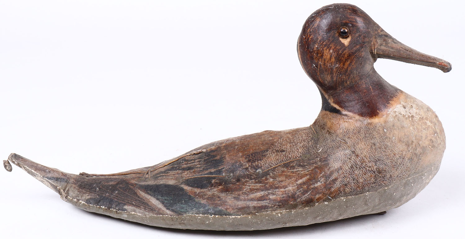 Pintail Drake by unknown maker, glass eyes, canvas over cork, original paint, structurally excellent. Grade: Excellent + - Value: 20 to 40
