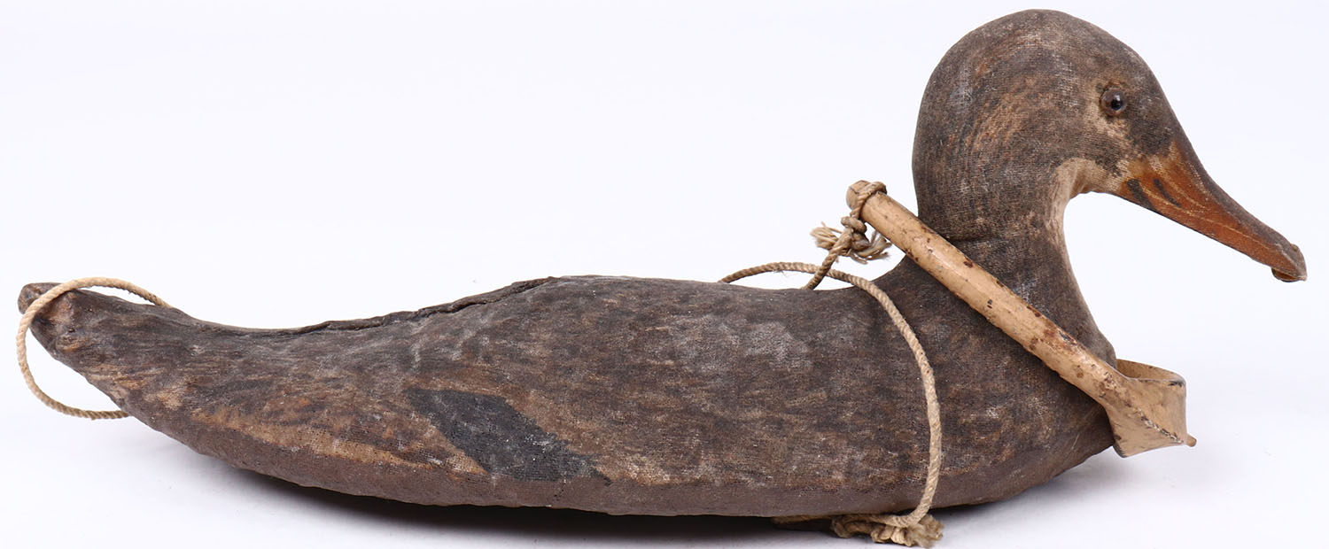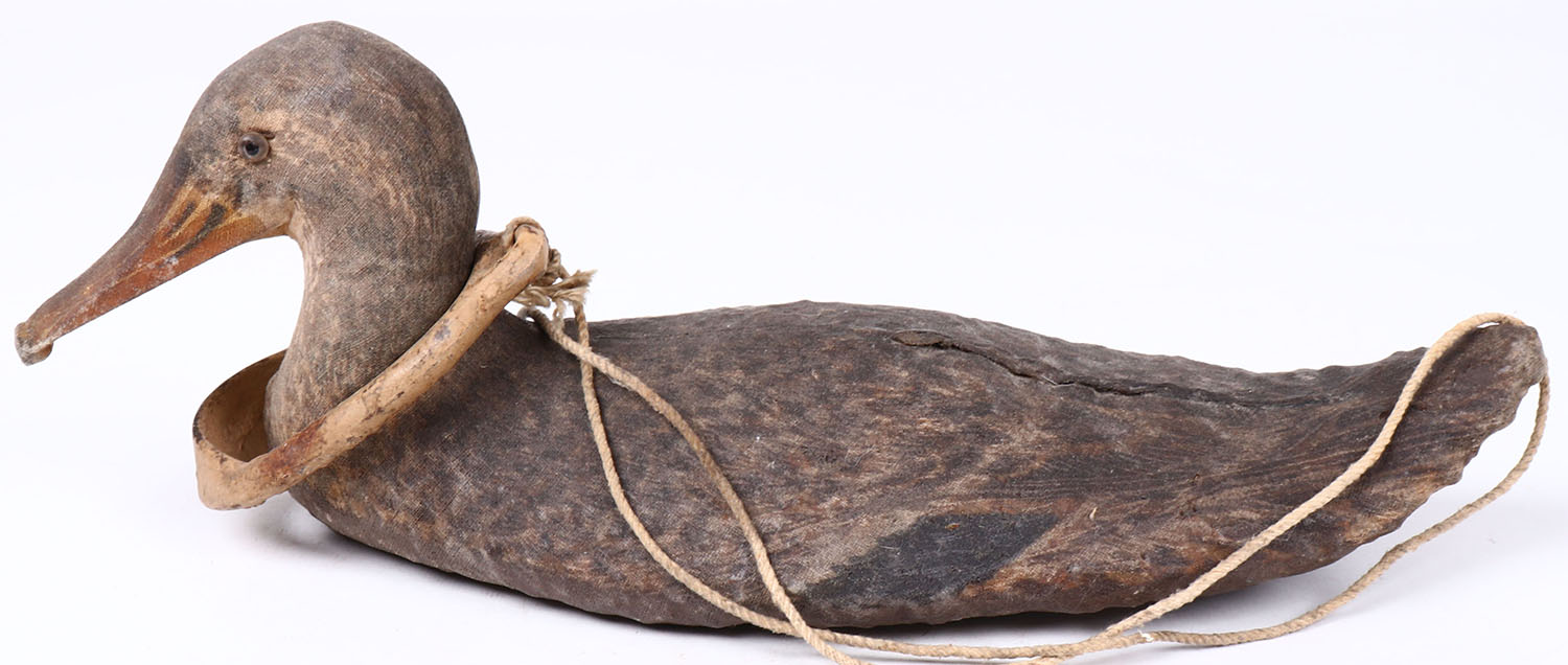 Mallard Hen by unknown maker, glass eyes, canvas over cork, original paint, structurally excellent. Grade: Excellent + - Value: 20 to 40