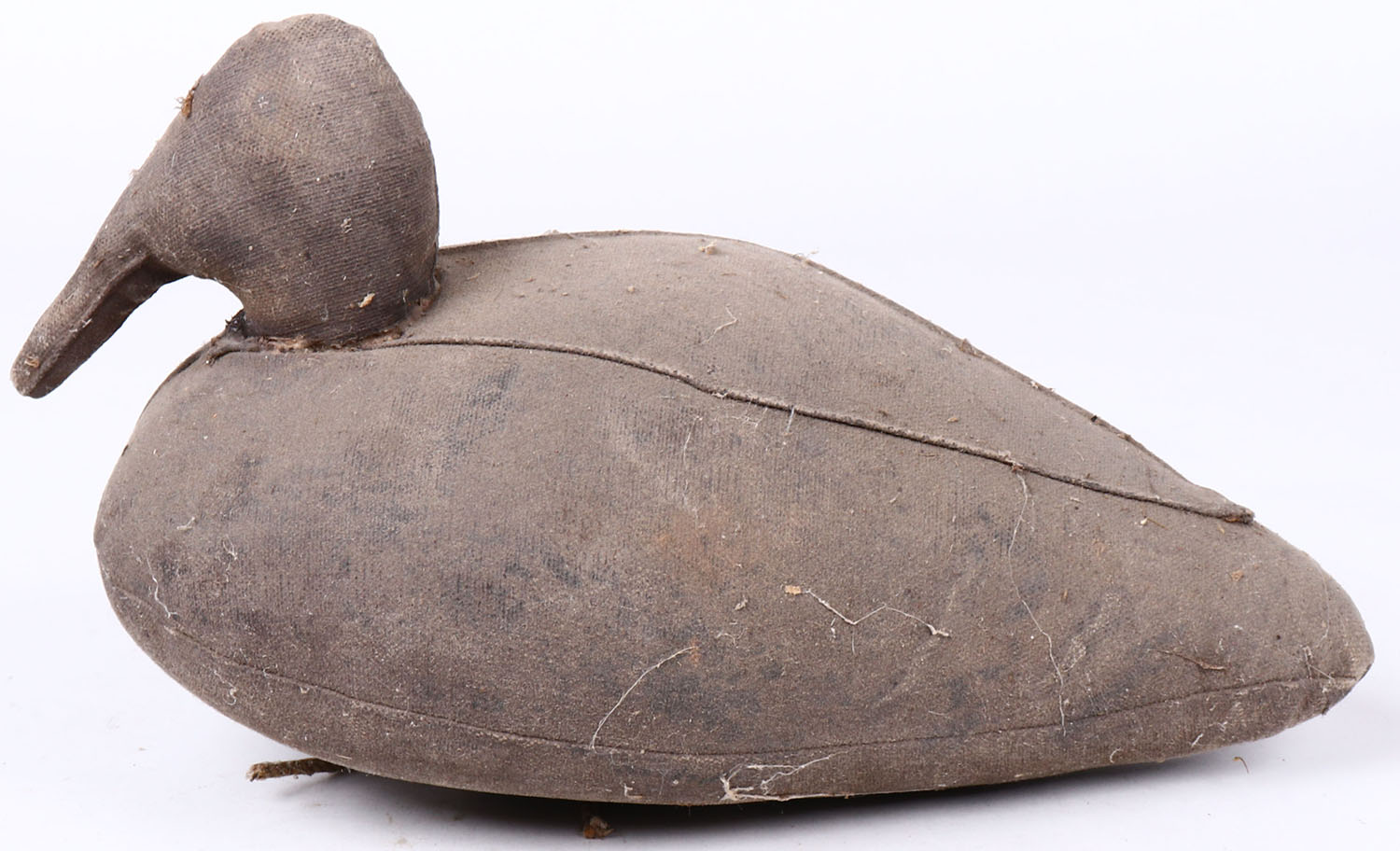 Canvasback Drake by unknown maker, no eyes, stuffed canvas, original paint, structurally excellent. Grade: Excellent + - Value: 10 to 30