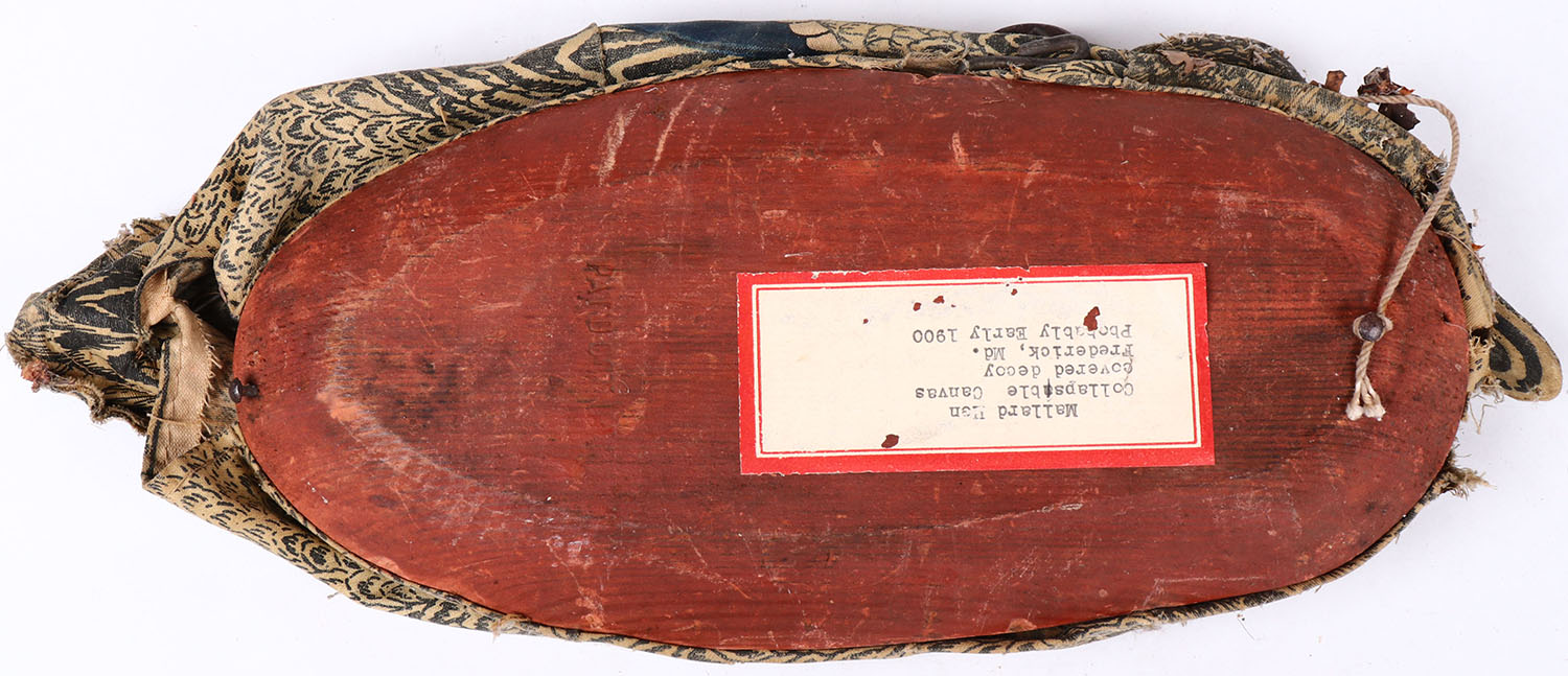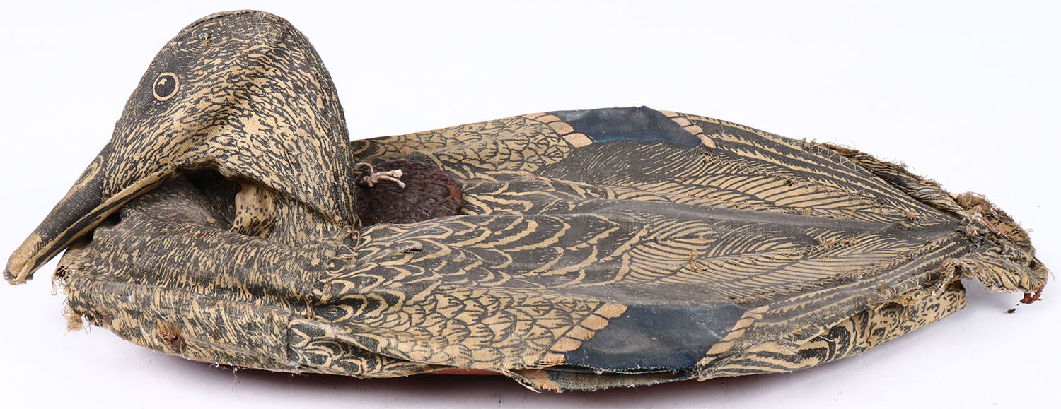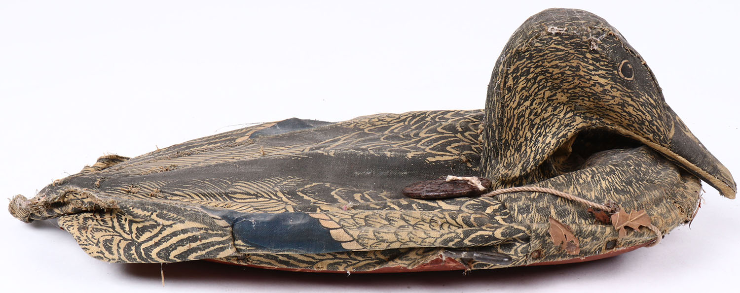 Mallard Hen by ACME Folding Decoy Co St. Louis, MO, has rare ACME lead embossed weight, painted eyes, collapsible canvas covered, original paint, structurally excellent. Grade: Excellent - Value: 20 to 60