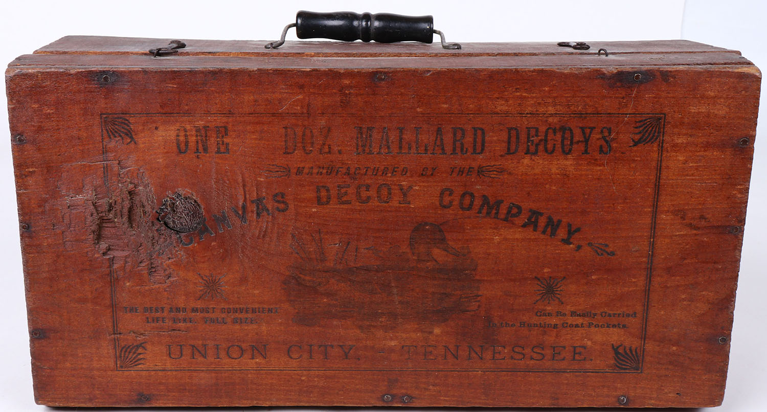 Empty wooden Decoy box by Canvas Decoy Company, Union City, Tennessee. Grade: Excellent ++ - Value: 50 to 100