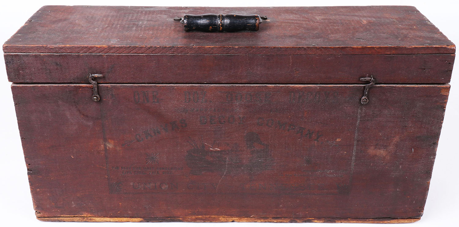 Empty wooden Decoy box by Canvas Decoy Company, Union City, Tennessee. Grade: Excellent ++ - Value: 30 to 60