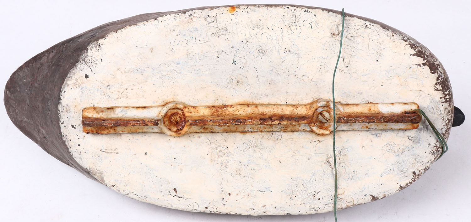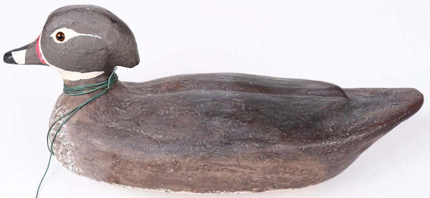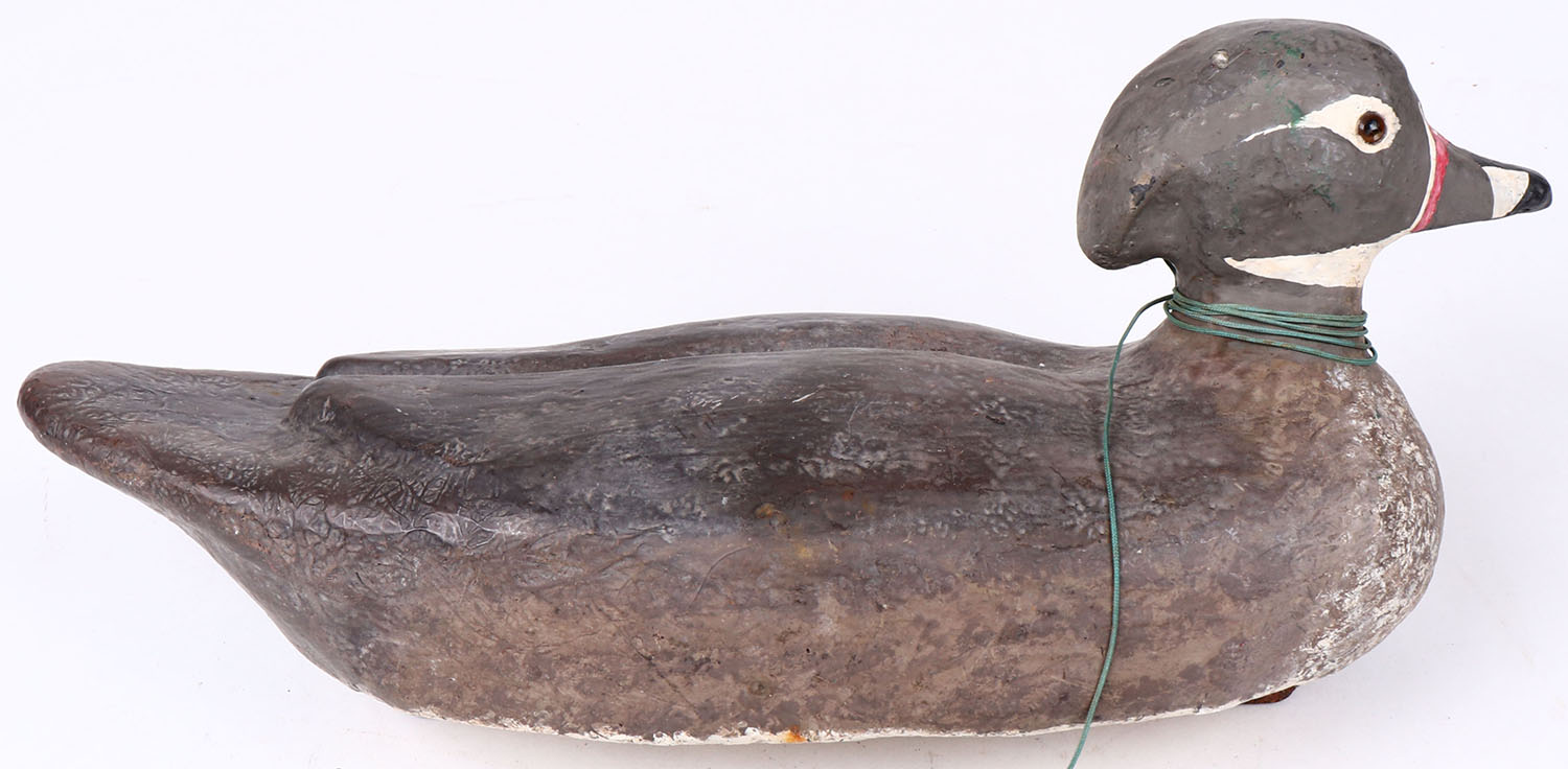 Wood Duck Hen by unknown maker, glass eyes, metal ? Original paint, structurally excellent. Grade: Excellent + - Value: 40 to 80