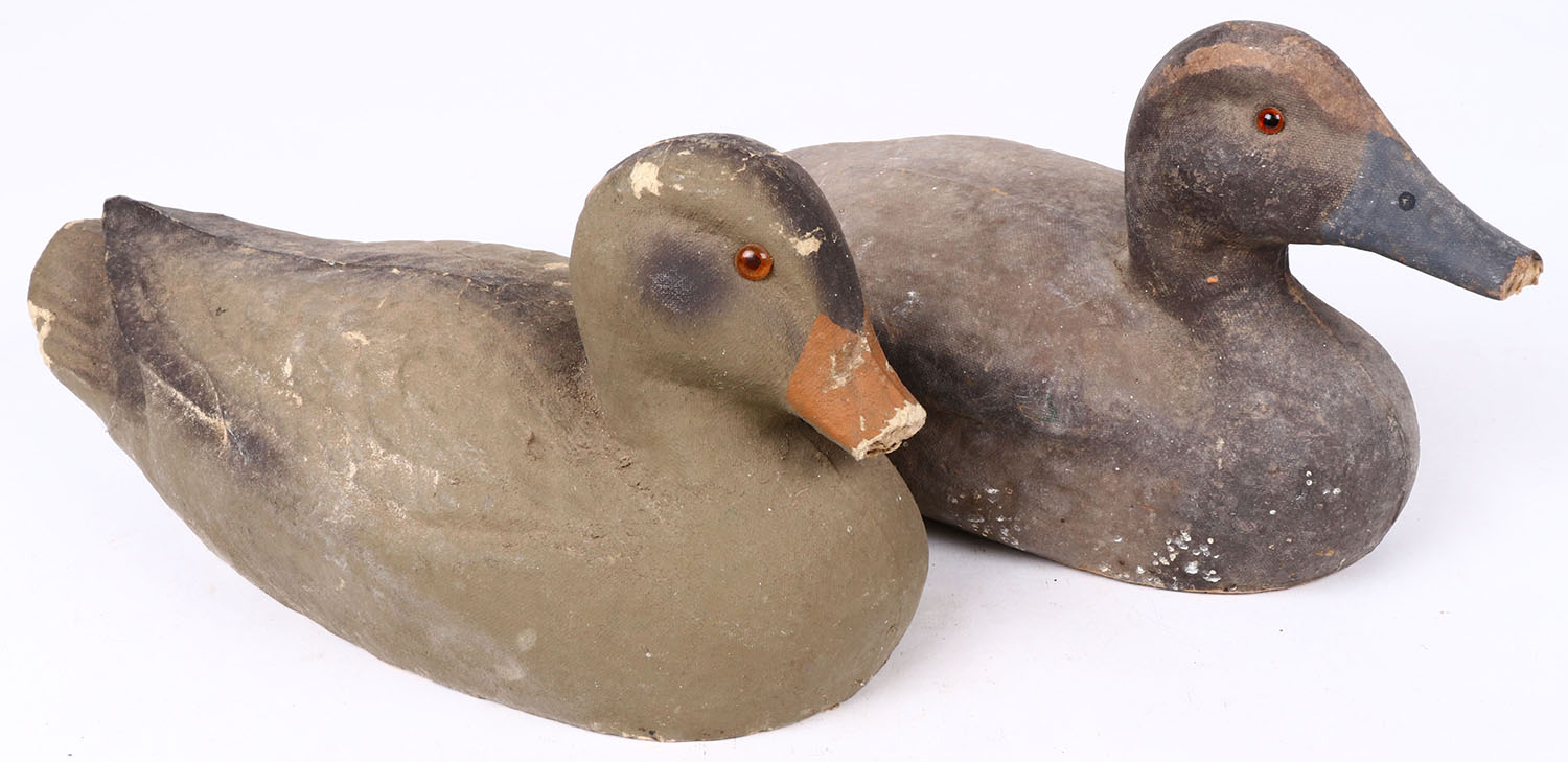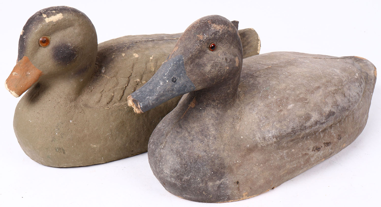 Lot of 2 Paper Mache' Decoys by Carry Lite Decoys, glass eyes, original paint. Wear to bill area. Grade: Very good - Value: 10 to 40