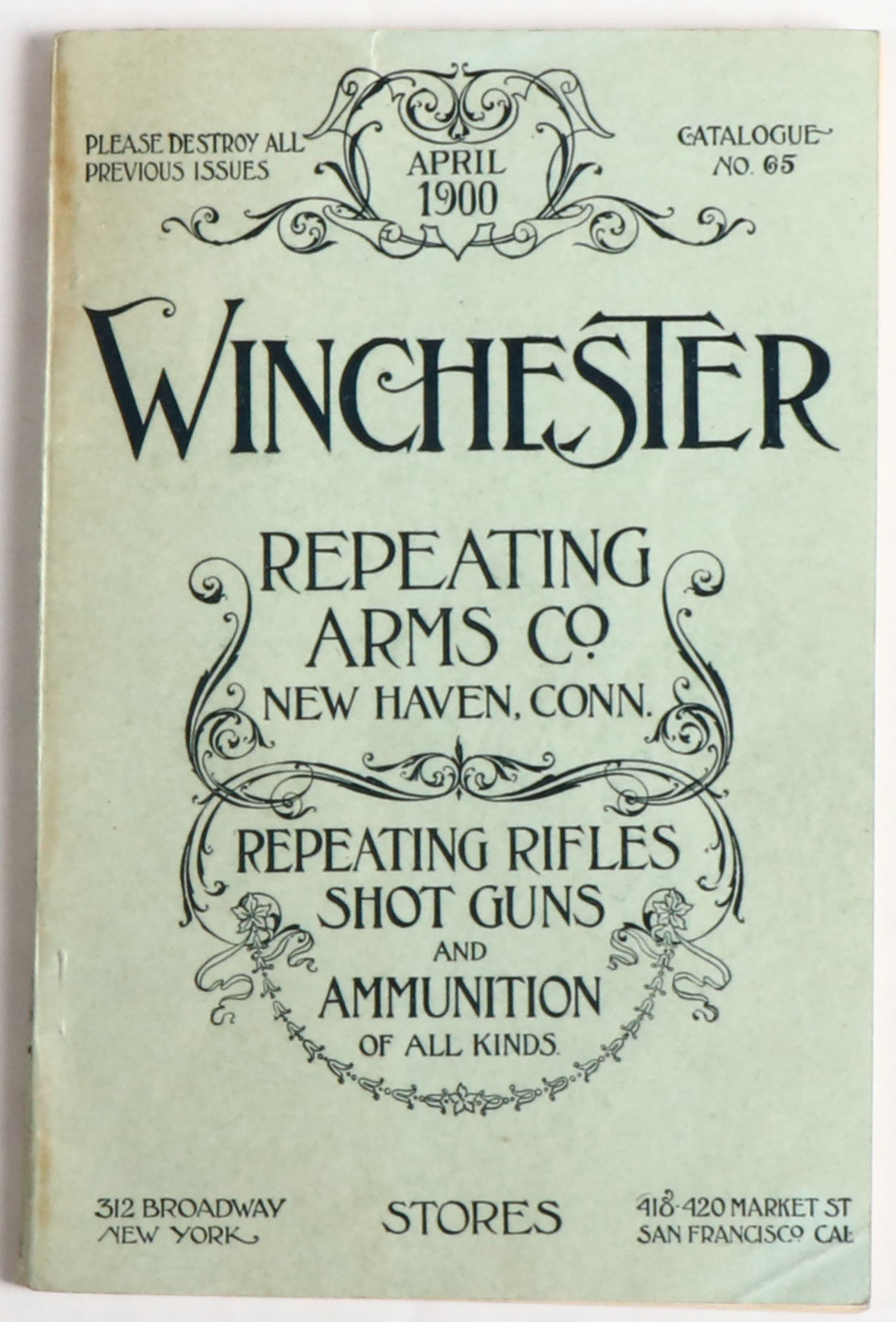 Winchester Repeating Arms Co. 1900 Catalogue No. 65, 5 1/2'' x 8 1/2''. 160 pages, pages clean, binding tight, papercover very good. Grade: Excellent + - Value: 2 to 60