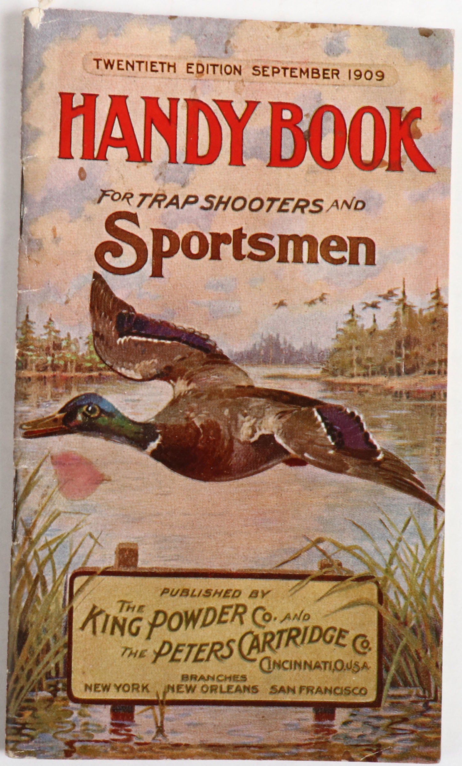 Handy Book for Trap Shooters and Sportsmen by The King Powder Co. And The Peters Cartridge Co. 4'' x 6 1/2''. 78 pages, pages clean, staplebound papercover excellent. Grade: Excellent + - Value: 2 to 60