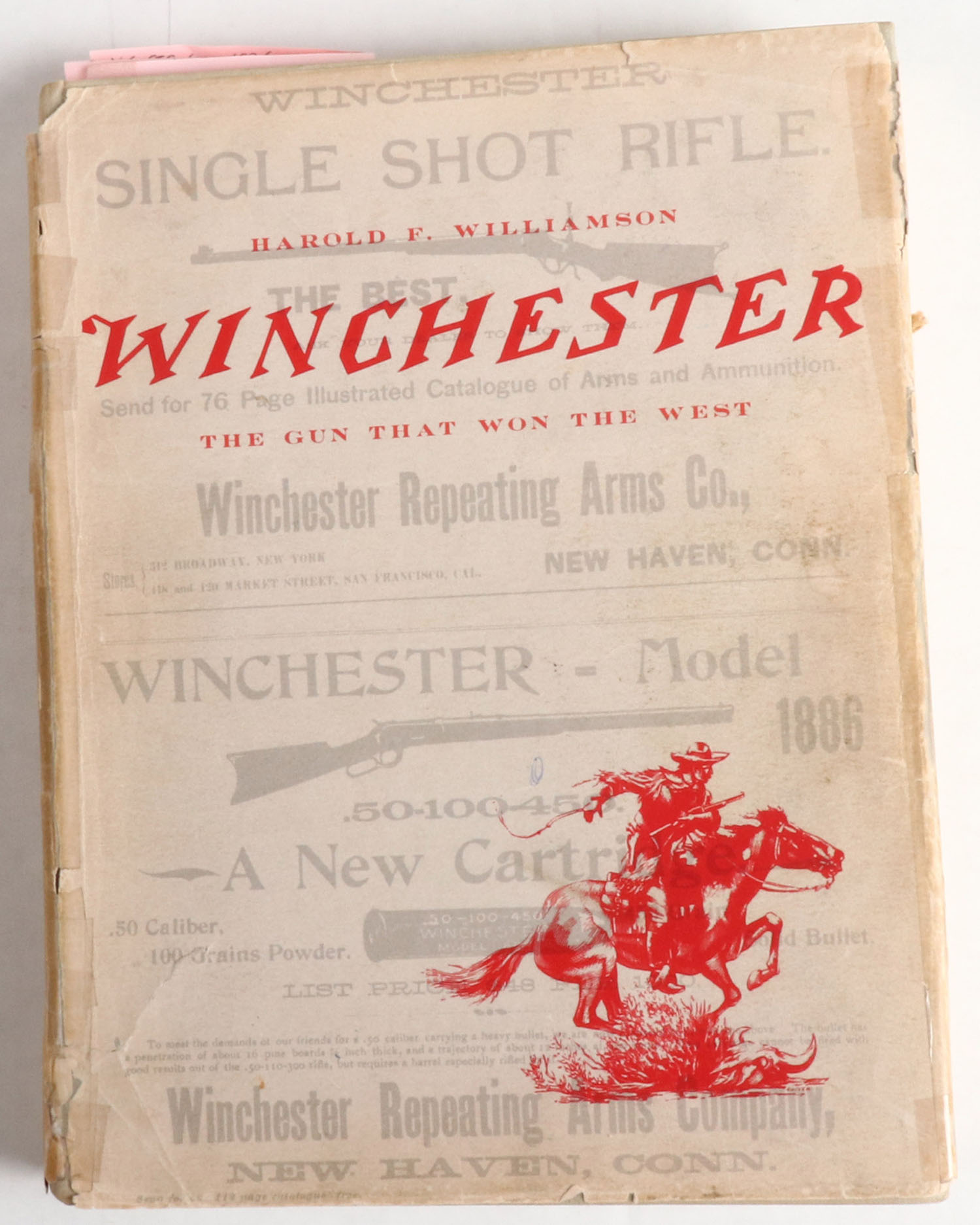 Winchester the Gun That Won the West by Harold F. Williamson, 8 1/2'' x 11''. 494 pages, pages clean, binding tight, hardcover good, dustjacket has multiple tears, B/W images. Grade: Very Good ++ - Value: 2 to 50