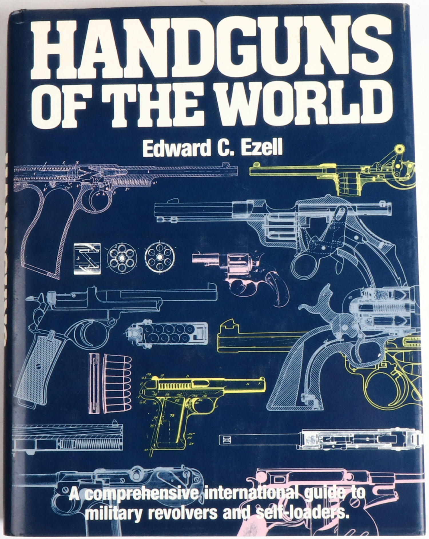 Handguns of the World: Military Revolvers and Self-Loaders from 1870 to 1945 by Edward C. Ezell, 8 1/2'' x 11''. 704 pages, pages clean, binding tight, hardcover and dustjacket excellent, b/w images. Value: $100 Grade: Excellent ++ - Value: 10 to 100