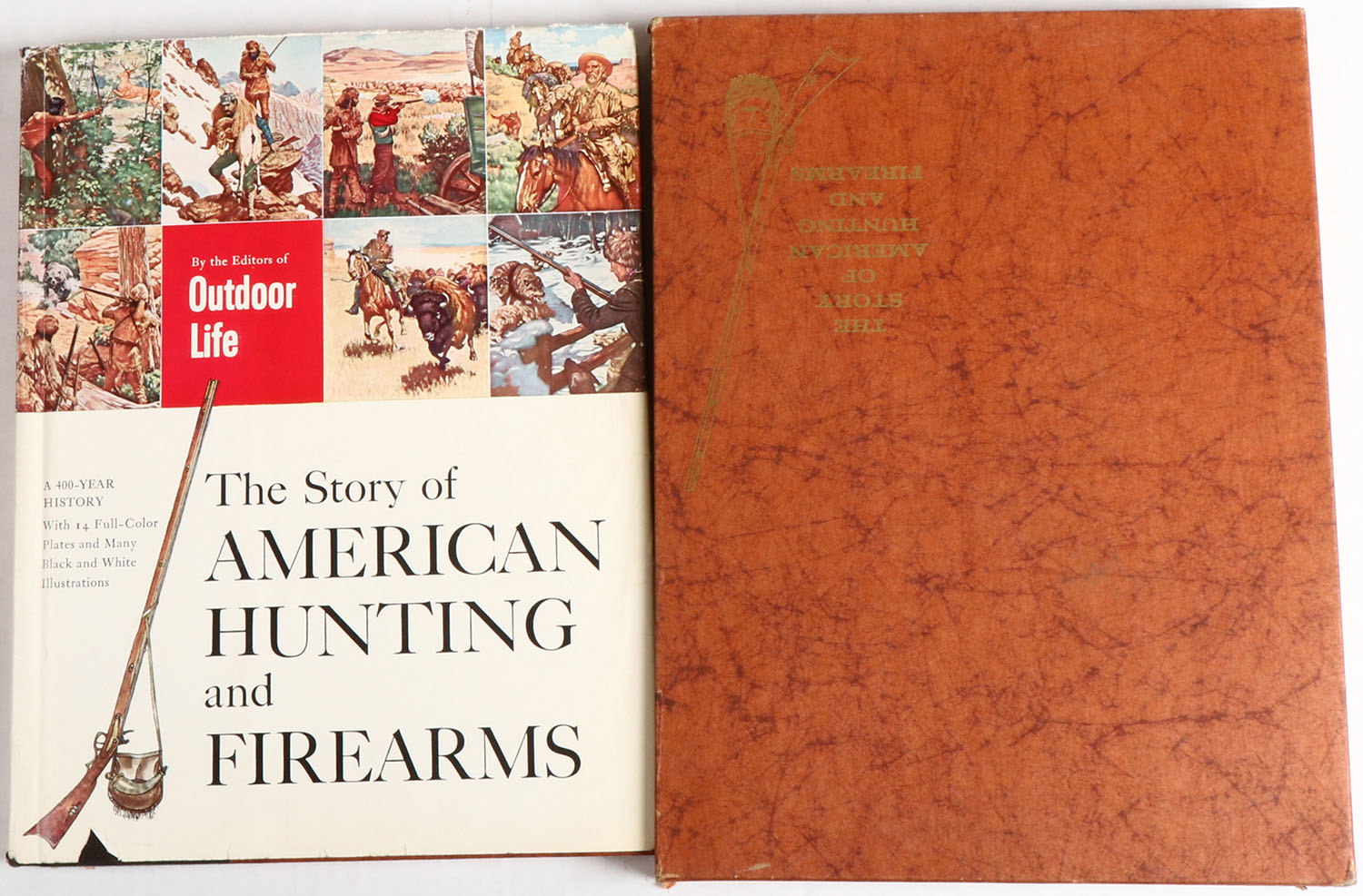 The Story of American Hunting and Firearms by Outdoor Life 1959, 10'' x 13 1/2''. 172 pages, pages clean, binding tight, hardcover & dustjacket very good, dustjacket has some light tearing. Comes in original hardcover book sleeve, colored images. Value: $100 Grade: Excellent + - Value: 2 to 100
