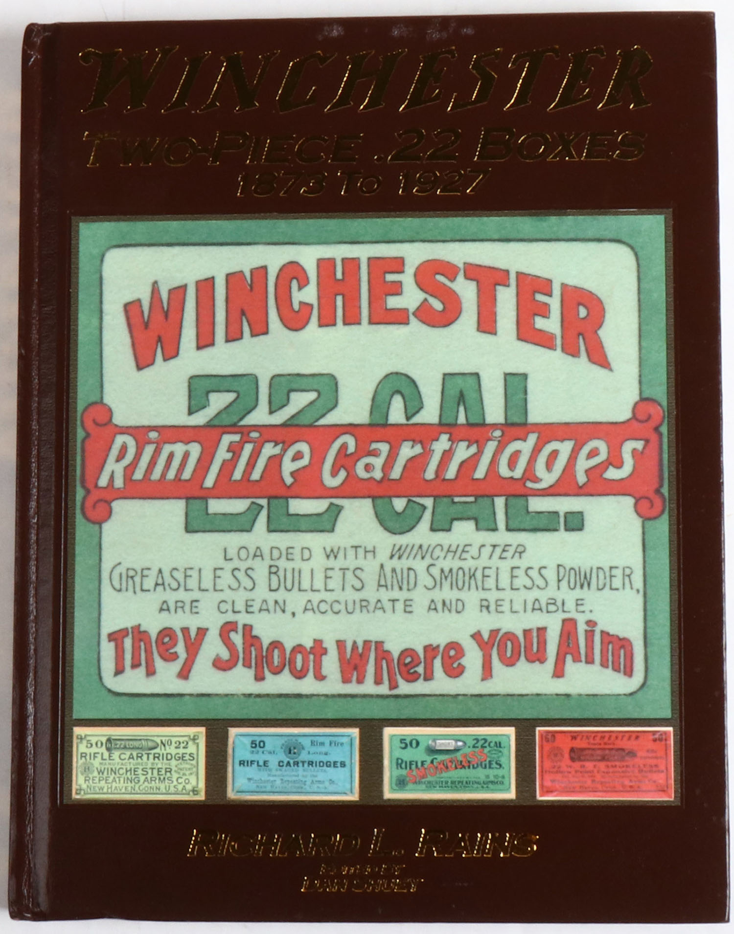 Winchester Two-Piece .22 Boxes 1873-1927 by Richard L. Rains 2006.8 1/2'' x 11''. 211 pages, pages clean, binding tight, hardcover mint, colored images. Value: $85 Grade: MINT - Value: 4 to 80
