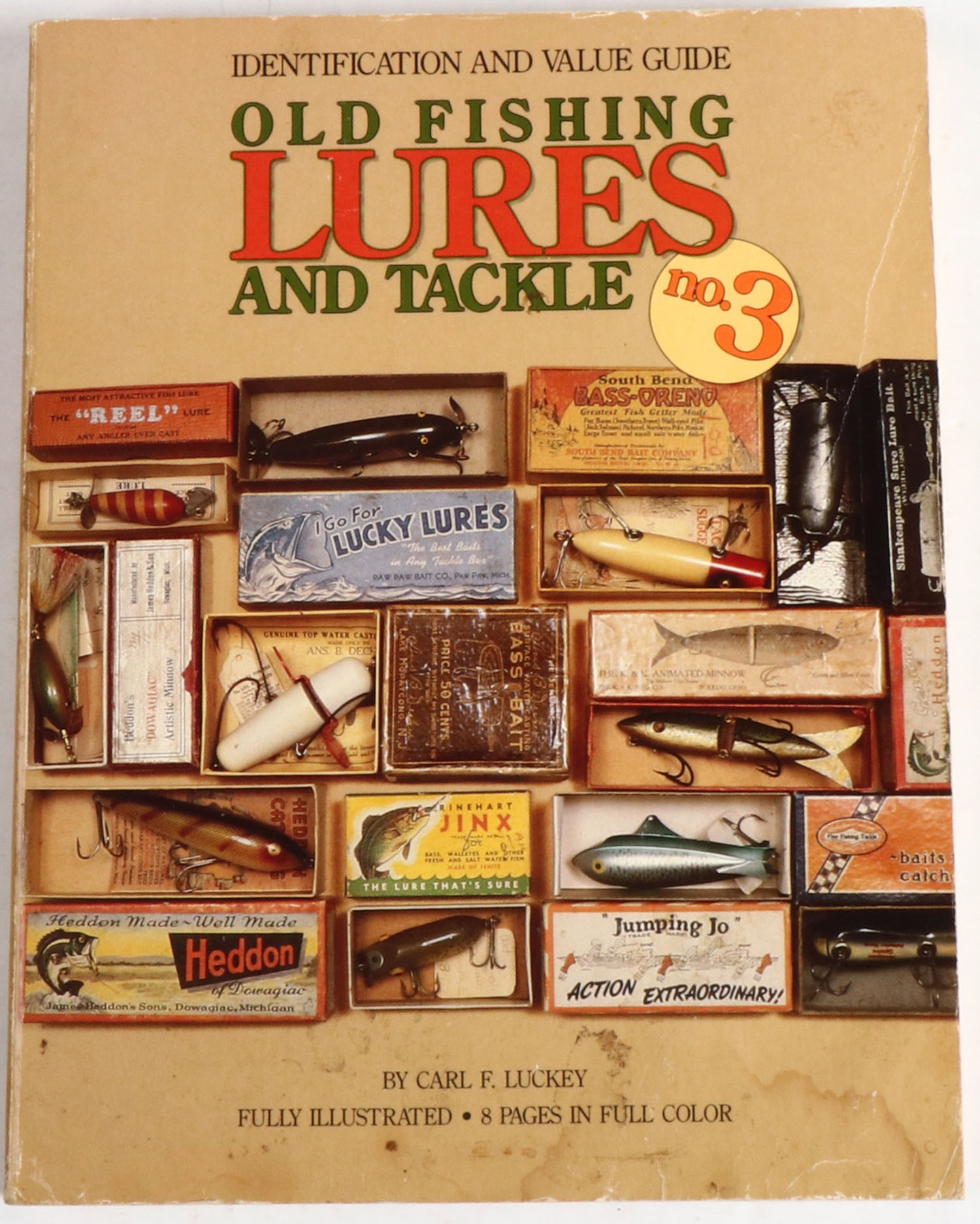 Identification and Value Guide: Old Fishing Lures and Tackle No. 3 by Carl F. Luckey. 1991, 9'' x 11'', 466 pages. Softcover has some staining, pages clean, b/w images, binding tight. Value: $120 Grade: Excellent - Value: 2 to 100