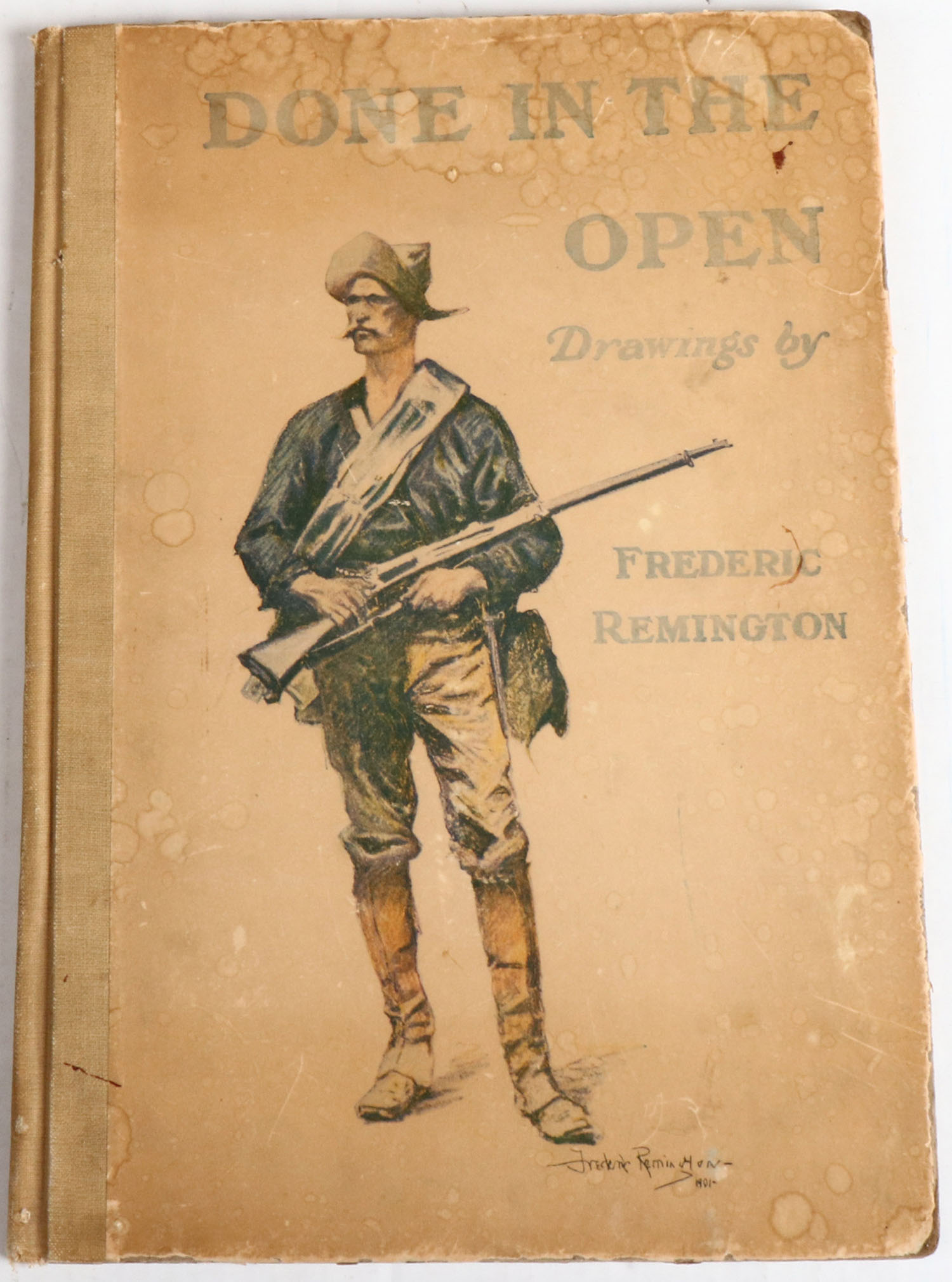 Done In The Open by Frederic Remington, Owen Wister, 11 1/2'' x 16 1/2''. Pages clean, binding tight, hardcover very good, b/w images. Value: $1,000 Grade: Excellent - Value: 20 to 200