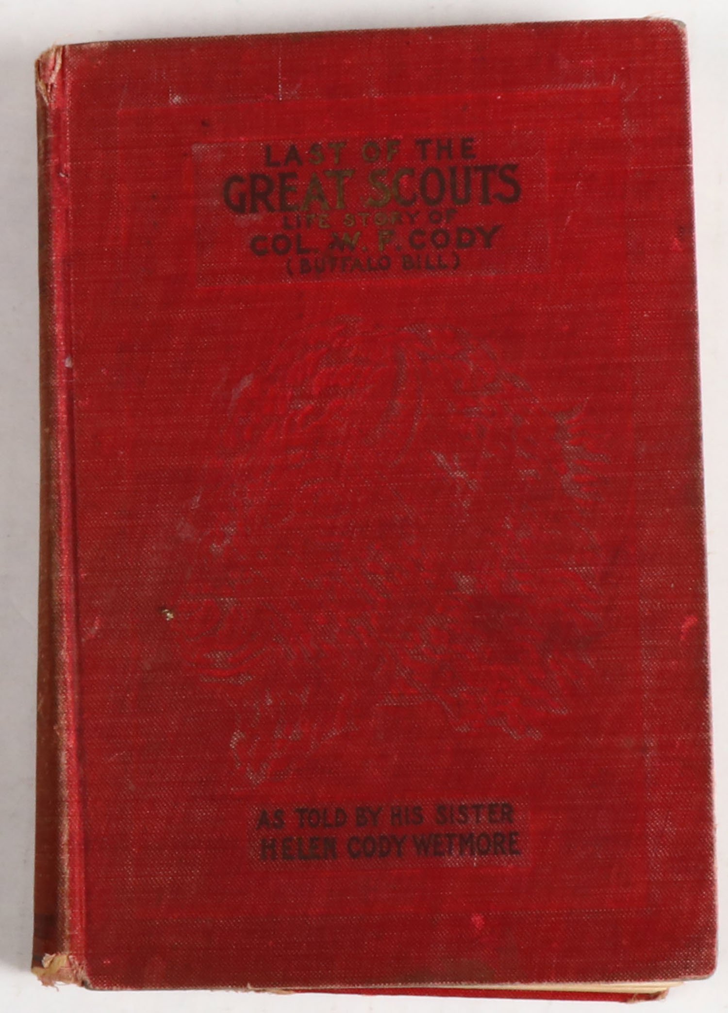 Last Of The Great Scouts: Life Story Of Col. W.F. Cody 1899, 6'' x 8 1/2''. 296 pages, pages clean, binding tight, hardcover very good, b/w and colored images. Grade: Very Good ++ - Value: 10 to 200