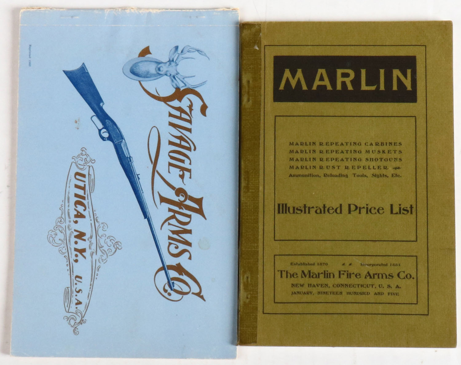 Lot of 2 (1) Marlin Illustrated Price List, 5'' x 8''. (1) Savage Arms Co. 1960, 8 1/2'' x 5 1/2''. Grade: Excellent - Value: 2 to 40