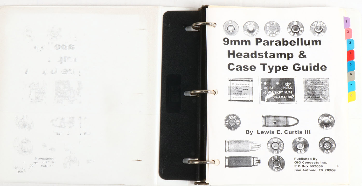 9mm Parabellum Lewis Curtis III Headstamp & Case Type Guide in a 3 ring binder. Grade: Excellent - Value: 2 to 100