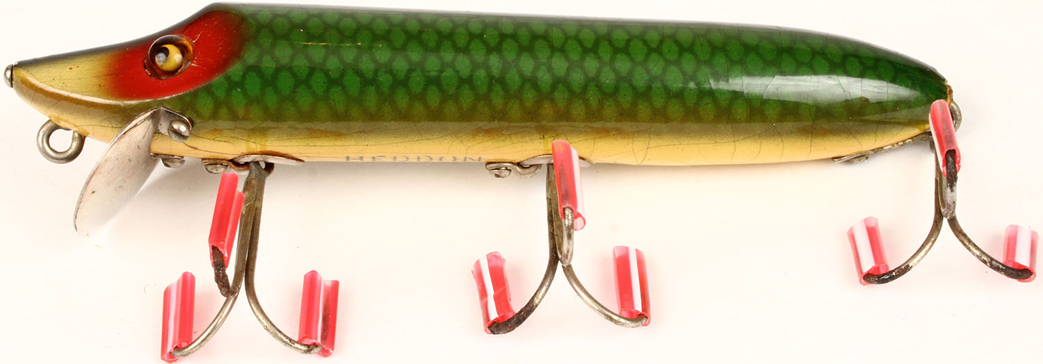 Heddon Vamp, wood lure, GE, green scale, 3 hooks, L-rig. Grade: Excellent - Value: 20 to 60