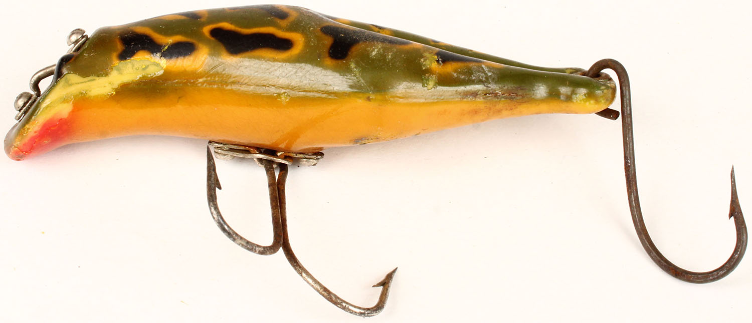 Heddon Lucky Luny frog lure, PE, Surface-rig, this has the closed legs for more structure, 2 hooks. Grade: Excellent - Value: 30 to 150