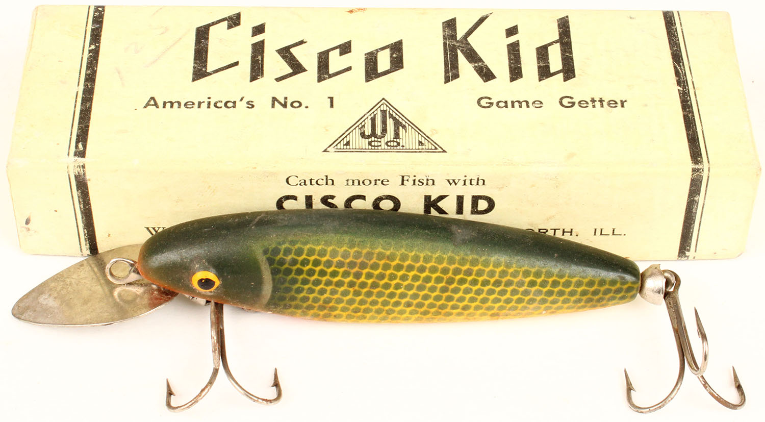 Cisco Kid Pike No 2C in original box with paper work, PE, green scale 2 hooks. Grade: Excellent - Value: 6 to 40