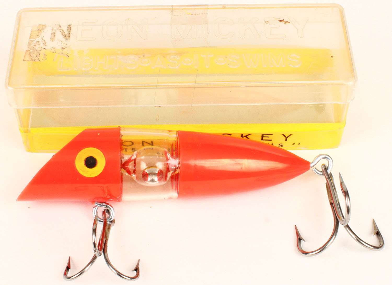 Neon Mickey Salmon Plug in orignal box, 4''. Grade: Excellent - Value: 10 to 40